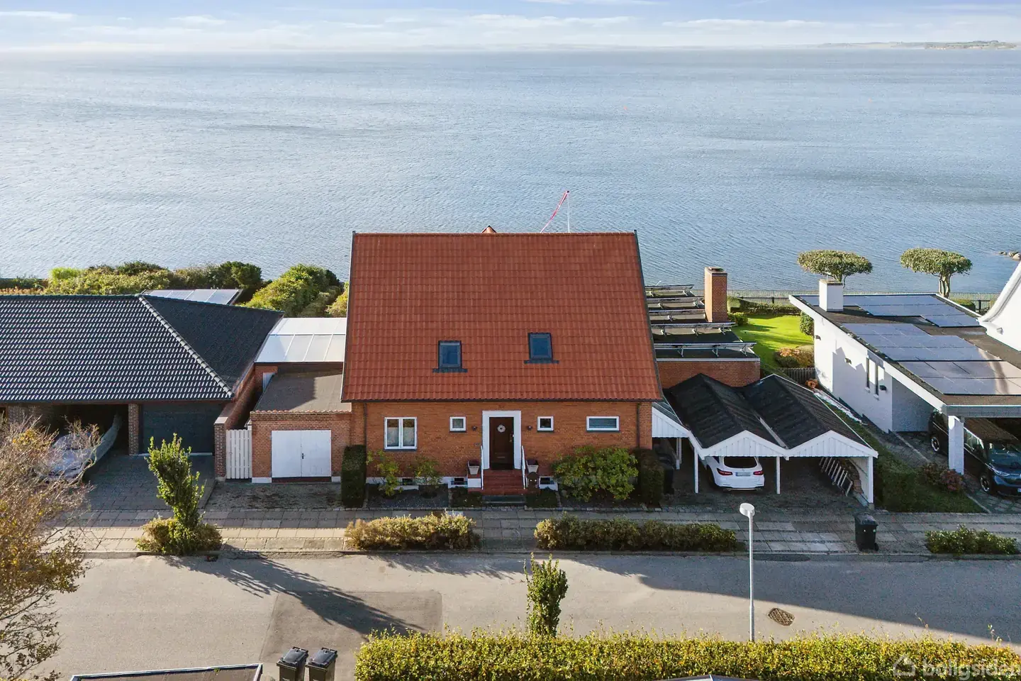 Velkommen til en markant villa på 252 m² med panoramaudsigt til Limfjorden fra den rolige del af Johnsens Alle i Thisted. Ejendommen fra 1941 ligger på en 905 m² grund og fremstår velholdt med nyere vinduer og et nyt tegltag fra 2023 med kobberinddækninger. Facaden er omfuget på størstedelen af huset (ikke mod nord), og allerede fra vejen mærker man kvaliteten og beliggenhedens styrke. Indretningen favner både repræsentative rum og praktisk hverdagsliv. Stueplanet rummer et alrum med åben forbin