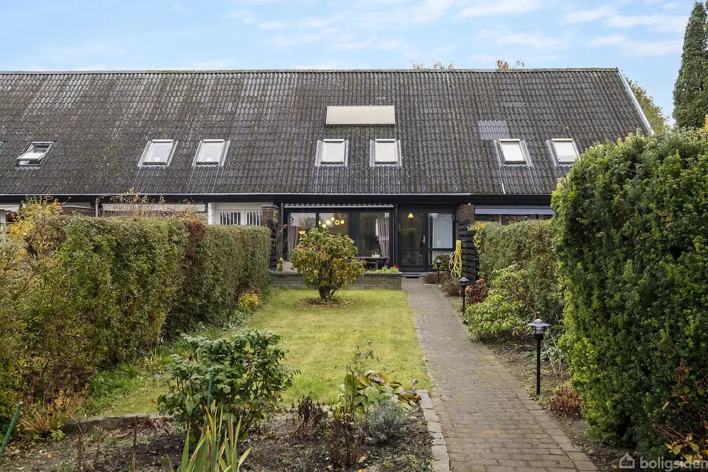 Lys og indbydende rækkehus med solrig have på attraktiv adresse.Lukket vej, fredfyldte omgivelser og en del af Bagsværd Skoledistrikt.Fantastisk planløsning med gode alrum, to toiletter og tre soveværelser. Ejendommen: Et lækkert rækkehus opført i 1974 i mursten, eternittag og med store vinduespartier der fylder hjemmet med naturligt lys. Ejendommen fremstår meget velholdt. Nuværende ejer har efterisoleret køkken mod ydervæg, efterisoleret gulv og gjort klar til gulvvarme i bryggers, køkken og b