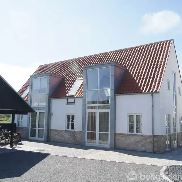 Utrolig flot villa med facadebehandlet murværk og markant høj sokkel. Den høje sokkel er udført i teglsten med skrabefuge i samme farve som teglstenene. Taget er belagt med røde vingetegl med hvid kantforskælling. Huset, opført i 2009, har et boligareal på 146 kvm fordelt med 93 kvm i stueplan og 53 kvm på 1. sal. Derudover er der en carport med redskabsskur på 29 kvm. Stueplan indeholder en lys stue med store vinduespartier og udgang til syd- og vestvendt terrasse. Køkkenet er moderne med alle hvidevarer og åbent mod stuen. Der er også et soveværelse med skabsvæg, et lækkert badeværelse med bruseniche og væghængt toilet, samt et bryggers med vaskesøjle og håndvask. Entreen har en flot trappe til 1. sal, som indeholder en stor repos/stue med udsigt til stuen nedenunder, to værelser og et badeværelse med bruseniche. Huset opvarmes med fjernvarme og er opført i gedigne materialer, der både er vedligeholdelses- og miljøvenlige, og som patinerer smukt over tid. Der er ingen bopælspligt, hvilket gør huset egnet som både helårs- og fritidsbolig. Beliggende kun 300 meter fra Danmarks bedste badestrand og 10 minutters gang til Løkken Torv, tegnet af arkitekt Jørgen Ussing. Løkken er en eftertragtet ferieby med en af Europas bedste badestrande og mange specialbutikker, dagligvarebutikker, skole, børnehave, bibliotek, idrætshal, svømmehal og meget mere. Byen har gennemgået en byfornyelse, og den nærliggende Søndergade er blevet en smuk promenade, der indbyder til lange traveture gennem klitlandskabet og langs "kærlighedsstien" ved Furreby bæk, som ender ved Vesterhavet. Grunden på 390 kvm inkluderer en gårdhave og en flot indkørsel med læskærm i sortmalet hegn. Huset bruges som fritidsbolig og er ikke forpligtet til udlejning. Velkommen til Løkken.