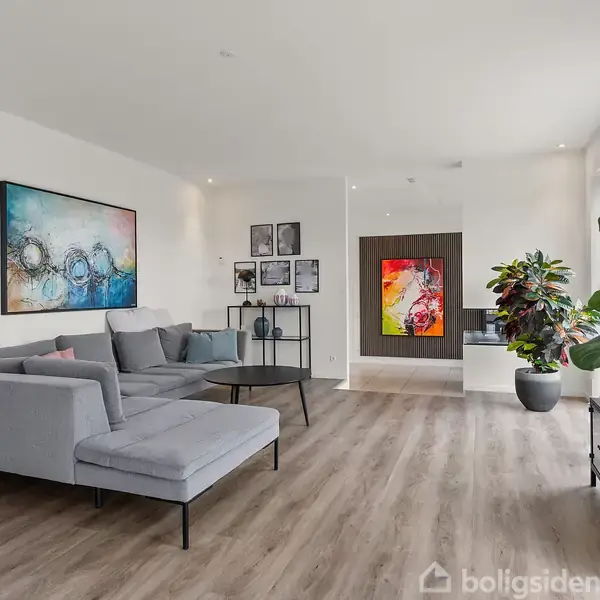 På Julianelund 104 venter en moderne og indbydende villa, hvor funktionalitet og æstetik går hånd i hånd. Allerede ved ankomsten fornemmes det flotte arkitektoniske udtryk, hvor murstensfacader og karakteristiske linjer skaber en stilfuld ramme om hverdagen. Her opleves en særlig atmosfære, hvor det er let at forestille sig hverdagen udfolde sig – uanset om I er børnefamilie eller et par, der ønsker god plads.Indenfor fortsætter oplevelsen med en veldisponeret planløsning, der giver mulighed for