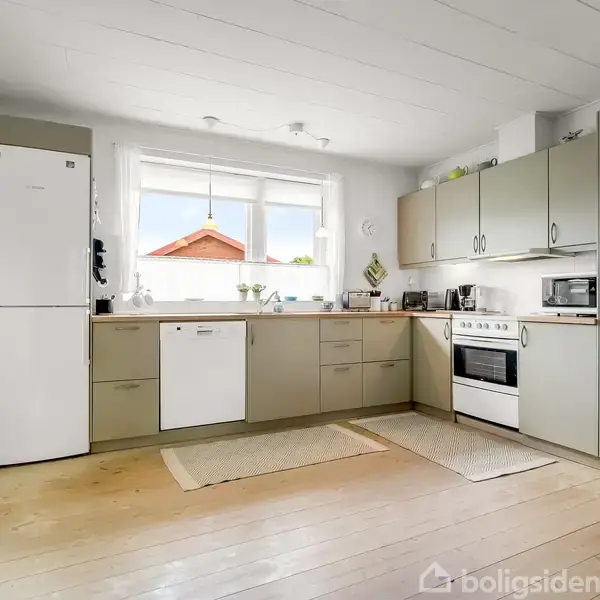 Det velholdte enderækkehus ligger på et lukket vænge, hvor der bor mennesker i alle aldre, men de seneste år er der kommet en del børnefamilier til kvarteret - og det er forståeligt. For fra boligen er der kun en kort cykeltur til skole - en tur de lidt større børn selv kan klare, ligesom I finder dagplejere og børneinstitutioner i nærmiljøet, der også byder på idrætsfaciliteter og lokale indkøbsmuligheder. Turen til Kolding Storcenter kan klares på cykel på ti minutter. Natur byder nærmiljø o