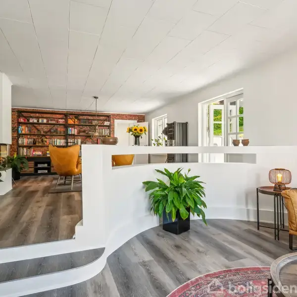 En livsnyderbolig efter alle forskrifter - Fantastisk køkken, hvor dine evner som madekvilibrist kan udfoldes i fuld flor - Specielt lækkert håndlavet vinkøleskab med køl og skydelåger fra lokal producent - Skønne stuer - den ene med gaspejs og den anden er nedsænket og bruges til tv - Dobbeltdøre ud til den lukkede gårdhave, som er delvist overdækket - Dejligt badeværelse med gulvvarme og niche- Kort afstand til indkøb, specialforretninger, idrætsfaciliteter, søerne, skovene og Sindbjerg/Stoubj