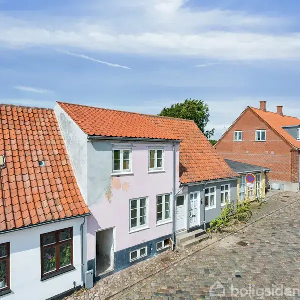 Charmerende byhus på de brostensbelagte gader i Ebeltoft