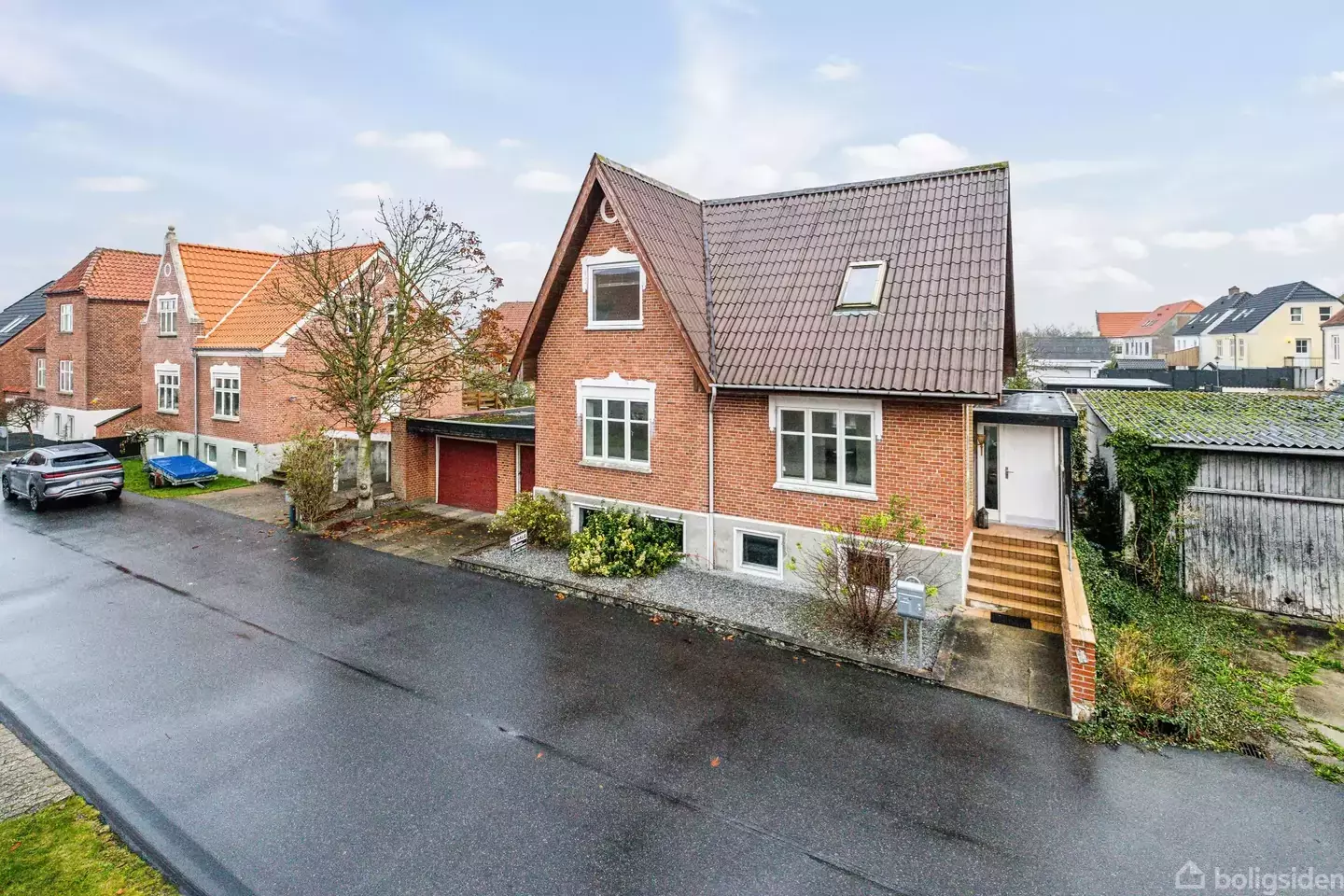 Kunne I godt tænke jer at bo mellem Limfjordens dybblå vand og Himmerlands grønne landskab? Og drømmer I om at slippe de indre indretningsarkitekter løs? Så kom da med til Juulsgade 2, hvor I kan sætte jeres eget præg på den noget så fine rødstensvilla.Ja, det er virkelig en fin villa, der står dér med solbrændte sten og fine detaljer i murværket. Dannebrogsvinduer i tre fag inviterer nærmere, og mens bilen kan parkeres i den murede garage, finder I vej om i haven gennem den røde dør. Høje hegn
