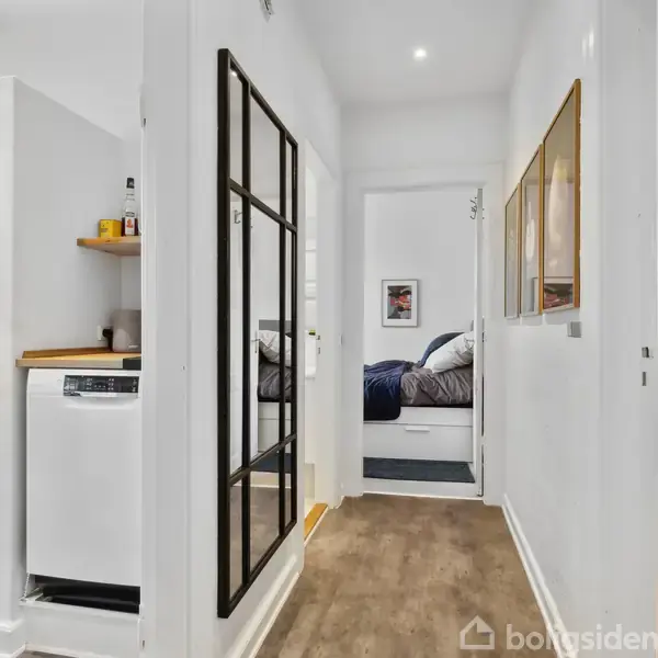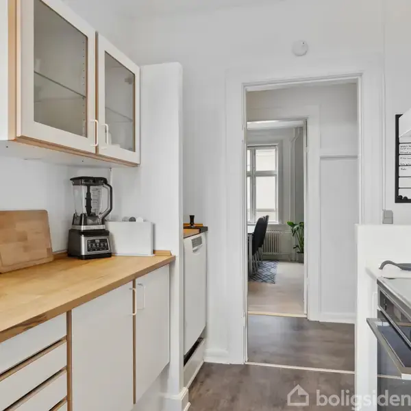 I hjertet af Viborg ligger denne velholdte ejerlejlighed på 84 kvadratmeter i en klassisk rødstensejendom fra 1907 med atmosfære og karakter. Beliggenheden kombinerer byens puls med nærhed til grønne områder og alle nødvendige faciliteter, hvilket understøtter et liv med både komfort og dynamik. Indretningen er lys og gennemtænkt med fokus på funktionalitet og en naturlig flow mellem rum. Her er to store stuer i åben forbindelse, adskilt af en skydedør, som giver fleksibilitet til forskellige br