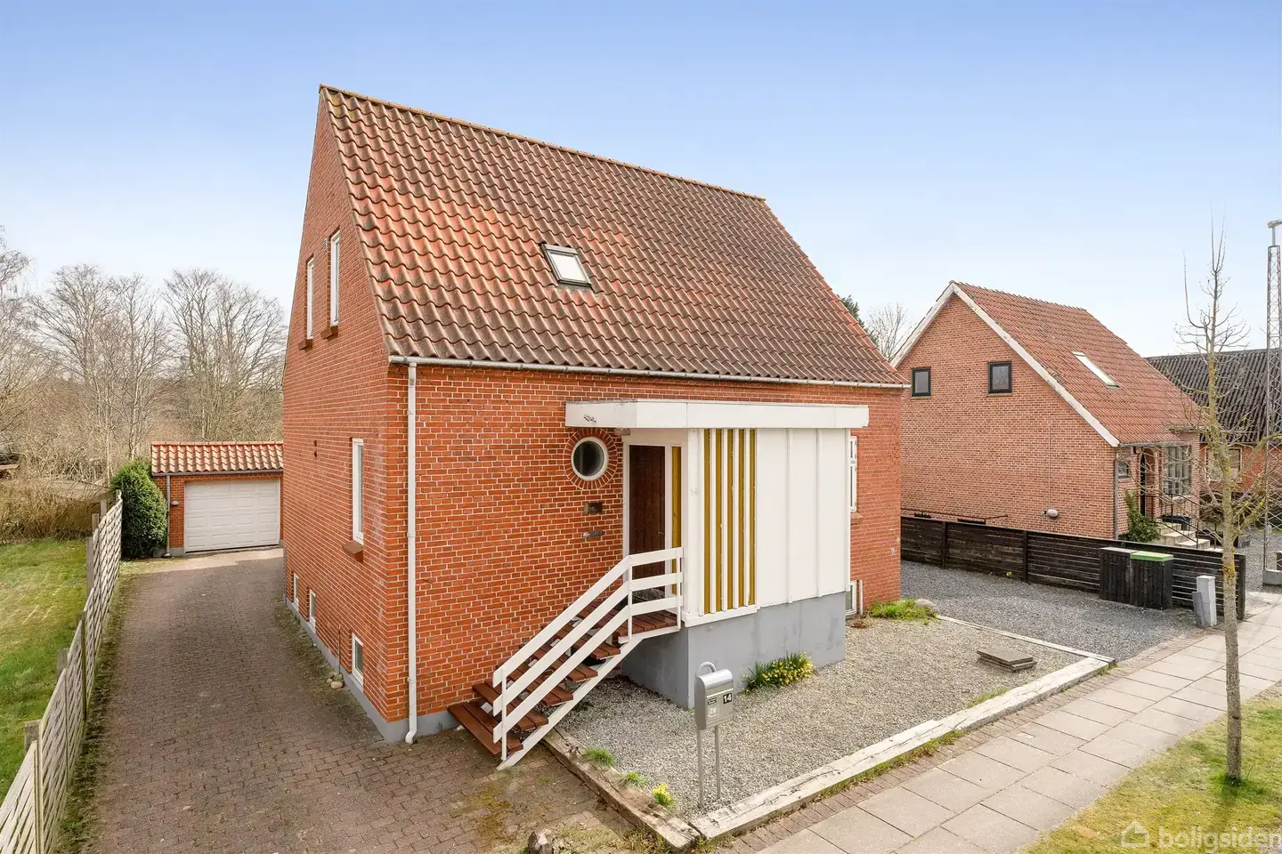 Rødstensvilla med god beliggenhed på stille villavej i Grindsted Centrum.Ejendommen byder på et samlet etageareal på 248 kvm., heraf 147 kvm. bolig og en god kælder på 101 kvm. Boligen er med følgende indretning:- Indbydende entre' med flot svungen trappe til 1. sal.- Gang med trægulv.- Pænt køkken med god bord- og skabsplads og i åben forbindelse med alrummet.- Dejligt alrum med plankegulv og dobbelt fransk dør til stue.- Spisestue med plankegulv.- Badeværelse med hvide fliser og lyst vaskearra