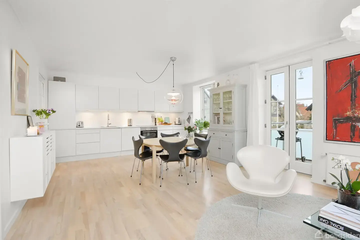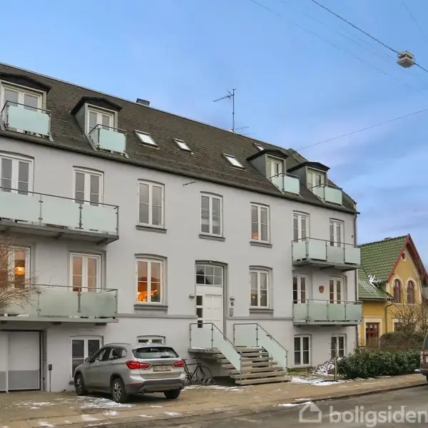 Åbent hus med tilmeldingskrav 1/3 - klik på billede - Lejligheden er beliggende i et af Frederiksbergs mest eftertragtede og stemningsfulde villakvarterer, kendt for sin rolige atmosfære, smukke arkitektur og hyggelige nærmiljø. Her bor man omgivet af klassiske villaer i Den Hvide By og grønne omgivelser, samtidig med at byens mange tilbud er inden for kort afstand. Frederiksberg Have og Søndermarken ligger blot en gåtur fra ejendommen og indbyder til daglige gåture, motion og ophold i nogle af byens smukkeste, historiske parker. Ejendommen er gennemgribende ombygget i 2012 og fremstår i dag moderne, velholdt og indbydende. Ejerforeningen består af blot 6 lejligheder og råder over en skøn, aflukket fælleshave, som understøtter den rolige og private stemning. I ejendommen er der elevator, dørtelefon, cykelkælder samt eget kælderrum, og elevatoren går fra kælder og have til alle niveauer i ejendommen. Lejligheden er en meget høj stuelejlighed, der på ingen måde opleves som en traditionel stueetage. Boligen fremstår lys og indflytningsklar med flotte parketgulve og lyse vægge. Det kombinerede køkken/alrum og opholdsstue udgør boligens naturlige samlingspunkt og er udført med et stilrent HTH-køkken med god skabs- og bordplads. Herfra er der via dobbeltdøre direkte udgang til en solrig altan, hvor solen kan nydes til langt ud på aftenen. Boligen rummer to gode soveværelser med kig til de ikoniske dobbelthuse i Den Hvide By. Værelserne har gode opbevaringsløsninger, herunder indbyggede skabe i master bedroom. Fra det andet værelse har man via dobbeltdøre adgang til fin fransk altan. Entréen byder ligeledes på praktiske skabsløsninger, som sikrer en funktionel og ryddelig hverdag. Badeværelset er lækkert og rummeligt med vindue, separat bruseniche, gulvvarme, godt indrettet skabsplads samt vaskesøjle. Lejligheden fremstår overalt i flot stand og kombinerer på fornem vis funktionalitet, æstetik og en særdeles attraktiv beliggenhed. En sjældent udbudt bolig i et kvarter, hvor villaidyl, grønne åndehuller og byliv går op i en højere enhed. Velkommen til Jyllandsvej 15.