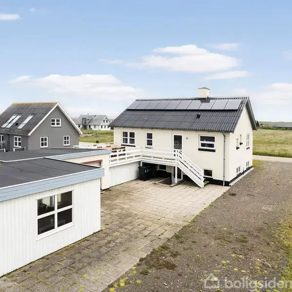 I den lille kystby Ferring kan vi nu præsentere jer for denne velholdte villa, der er energivenligt opgraderet med to luft-til-luft varmepumper og solceller med tilhørende batteri, så strømmen kan lagres til senere brug. Villaen er på 164 etagemeter, og uanset om I drømmer om en solid helårsbase eller en hyggelig fritidsbolig, er det et hus, hvor beliggenheden kommer til sin ret. I får nemlig en skøn udsigt til Vesterhavet. Landsbyen ligger helt ude ved kysten, og dermed kommer I til at bo ganske få trin fra stranden. Samtidig ligger landsbyen lidt højt i landskabet, så i modsætning til andre af kystens beboere har I et direkte udsyn til Vesterhavet fra boligen. Lidt længere nede ad kysten finder I kulturinstitutionen Bovbjerg Fyr, mens den naturskønne Ferring Sø ligger i gåafstand lidt nord for landsbyen. I har et kvarter i bil til Lemvig, og mange af omegnens landsbyer tilbyder desuden forskellige fornødenheder. Villaen er på 82 m², og I får desuden en kælder i samme størrelse. Dertil kommer en garage og et hyggeligt udhus på 20 m², som mest af alt minder om en havestue. Også herfra har I udsigt til vandet, men udsigten nydes alligevel bedst fra den hævede terrasse, der ligger på niveau med boligens stueplan. Indenfor får I en fornuftig udnyttelse af pladsen. Køkkenet er rummeligt og udstyret med fyldningselementer, og stuen ved siden af er ligeledes stor. Derudover er villaen indrettet med et enkelt værelse og et toilet, mens det egentlige badeværelse ligger i kælderen. Her finder I også et vaskerum, mens et par disponible rum i anvendelig stand afrunder boligens praktiske dispositioner. Alt i alt et godt hus med en virkelig skøn beliggenhed. Huset sælges møbleret, så i nemt kan flytte direkte ind og nyde omgivelserne - kontakt os på tlf. 96 63 40 00 for en fremvisning.