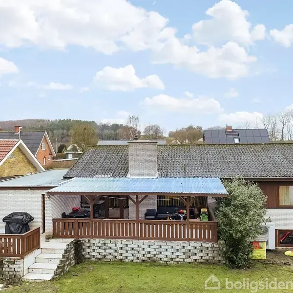 Velkommen til denne velindrettede bolig på Kærvej 19. Boligen byder dig velkommen gennem en rummelig entre og fordelergang, hvorfra du har adgang til både værelsesafdelingen og opholdsafdelingen. I den generøse opholdsafdeling står en dejlig stor stue klar til at møde dig. Her er der tilstrækkelig plads til både spisebord og et hyggeligt afslapningshjørne. I åben forbindelse med stuen finder du et lyst køkken fra 2017, komplet med en praktisk spiseplads. Den store stue åbner også op til en lækker overdækket terrasse, renoveret i 2018, der inviterer til udendørs fornøjelser. Værelsesafdelingen byder på to værelser og et soveværelse, alt sammen tilgængeligt fra den praktiske fordelergang. Her finder du også et veludstyret badeværelse med både bruseniche og badekar samt et ekstra toilet for optimal bekvemmelighed. Udvendigt møder du en carport og et tilhørende skur, der udgør praktiske opbevaringsmuligheder. Bag huset strækker en vedligeholdelsesnem have sig ud, primært bestående af græsplæne og en hæk mod naboerne. Her kan du nyde en skøn udsigt mod åbne vidder og omgivelserne. Villaen er beliggende i Sdr. Onsild st.by, hvorfra der er cykelsti til Sdr. Onsild, der har børnehave, indkøbsmuligheder, idrætsfaciliteter m.v. Perfekt for pendlere med kun få min. kørsel til E45.