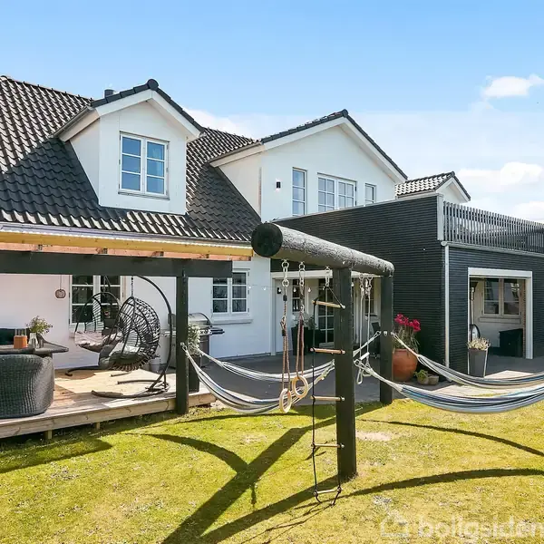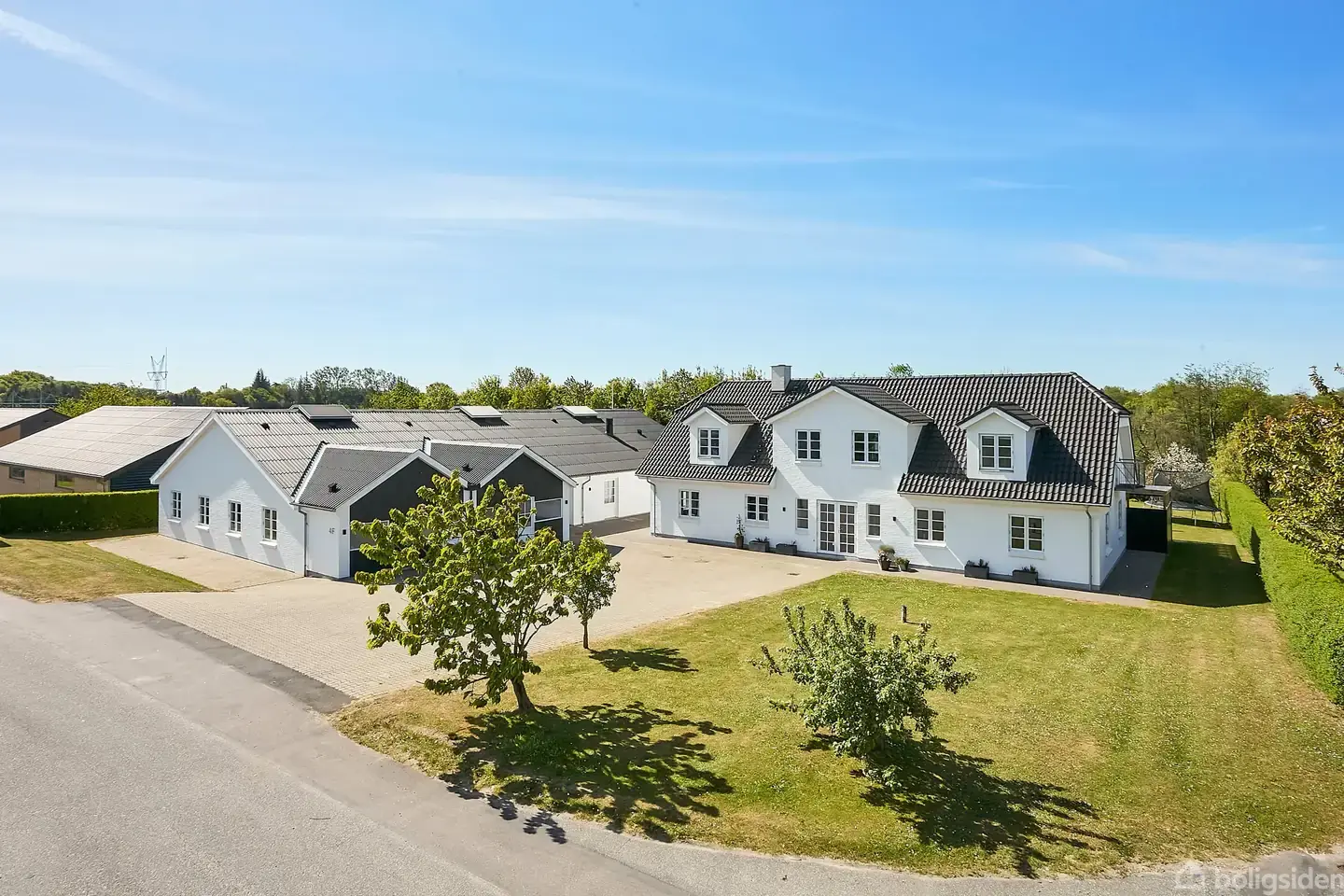 OMRÅDET OG BYGINGER: Denne yderst præsentable og meget rummelige villa indeholdende et 145 m² stort, integreret poolhus med fitnessrum og barområde er beliggende i altid attraktive Egebjerg. Til ejendommen hører ligeledes en 391 m² stor erhvervsbygning der for sælger fungerer som et flot forsamlingshus med et stort festlokale, fine toiletfaciliteter, gode køkkenforhold og ditto garagefaciliteter. Her er regulære muligheder for at omdanne bygningen til andre gode anvendelsesmuligheder (2 generati