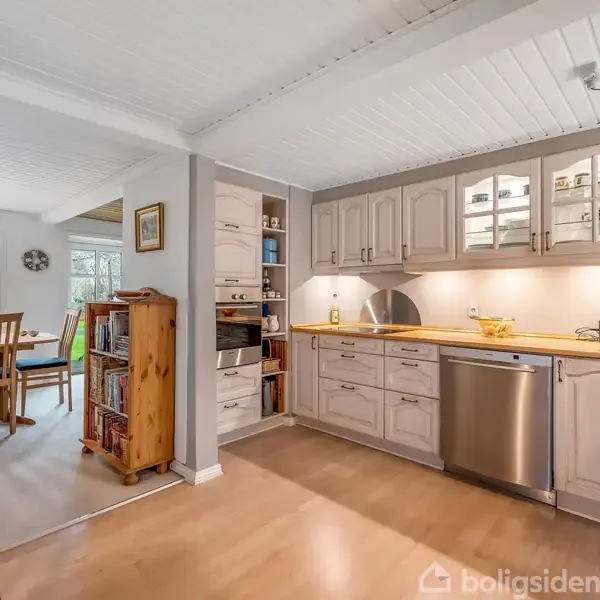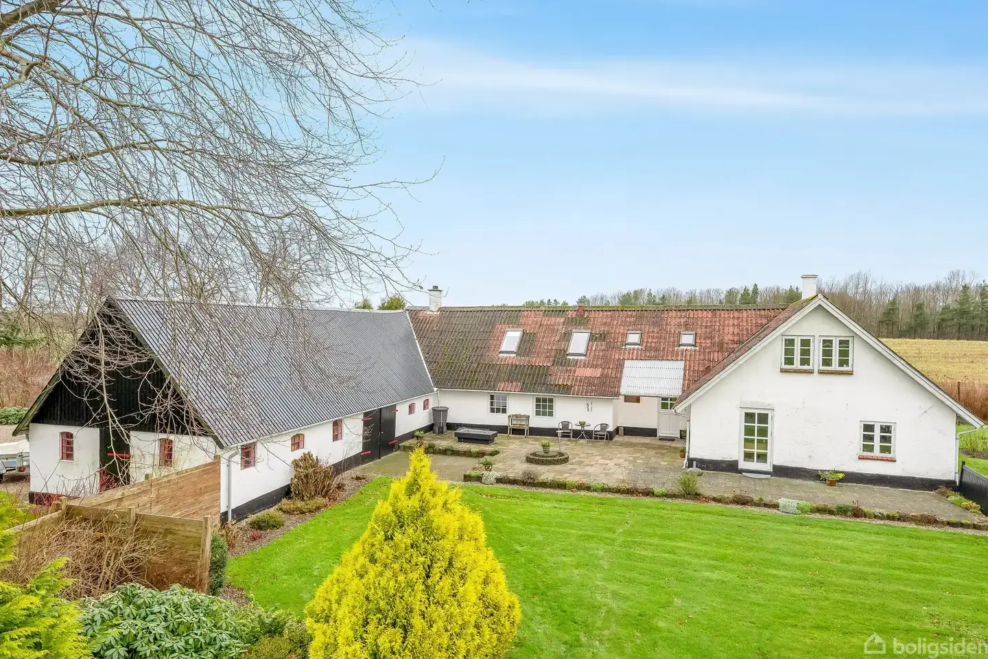 Drømmer I om et hjem omgivet af natur, fred og privatliv? Denne ejendom ligger som et lille, ugeneret fristed midt i de naturskønne omgivelser, hvor roen falder helt naturligt på plads i hverdagen. Grunden ligger tilbagetrukket fra vejen, og takket være tæt beplantning samt placeringen af garage og værksted, får man en helt særlig fornemmelse af privatliv, hvor hverken forbipasserende kan kigge ind og hvor man samtidig er godt afskærmet fra lydene udefra. Indenfor bydes man velkommen i en rummel