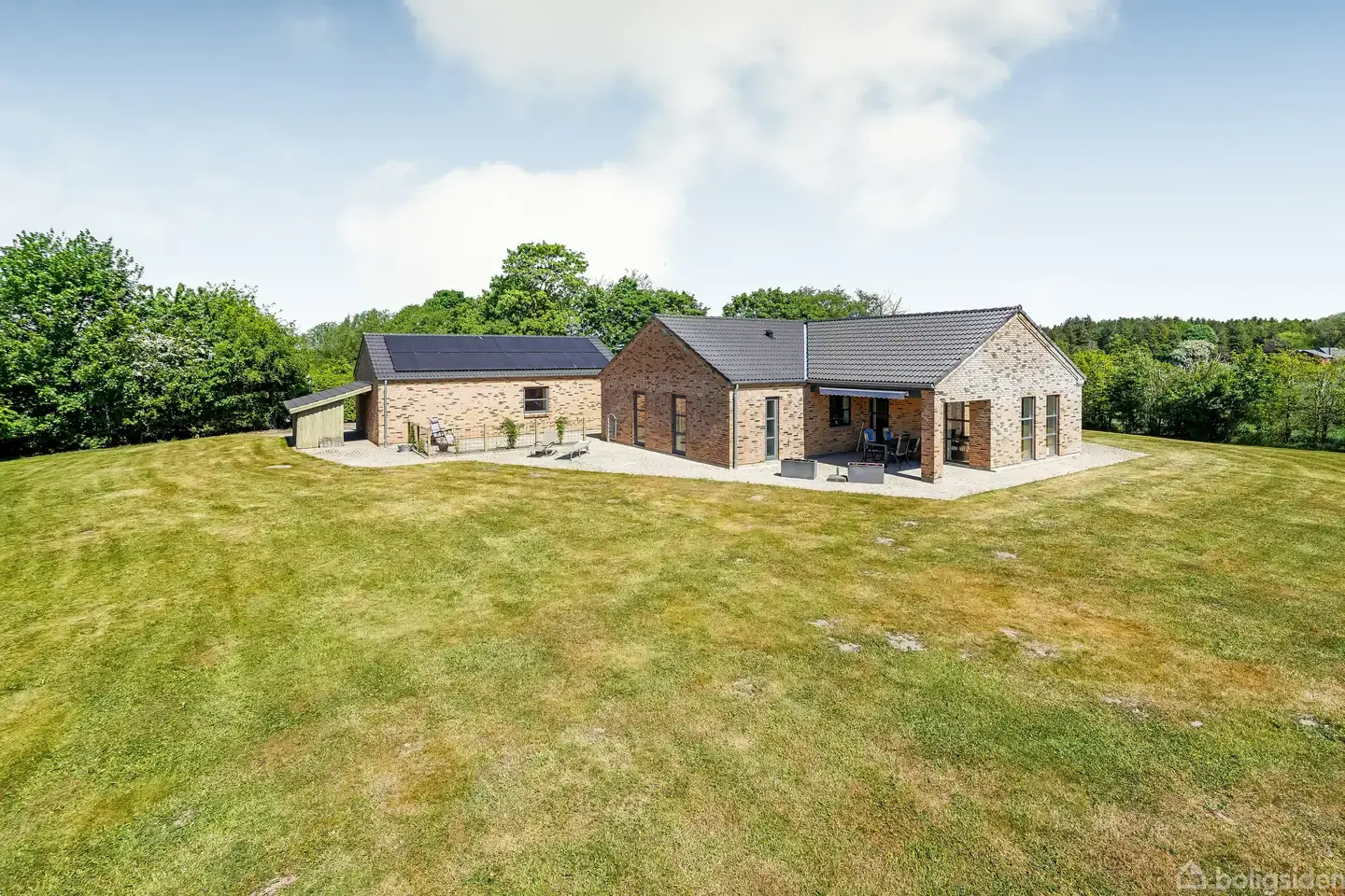 - Velkommen til denne skønne villa, der strækker sig over hele 187 kvadratmeter bolig, foruden den store garage på intet mindre end 81m2. Naturskøn beliggenhed på en 4800 kvadratmeter grund, med en idyllisk placering tæt på Uldum kær. Den yderst velholdte og indflytningsklare bolig har en yderst moderne og tidssvarende planløsning, med værelser til familiens børn i den ene side og forældrenes soveværelse i den anden. Ydermere et kontor, ud til alrummet som ligeledes kan bruges til legerum, u
