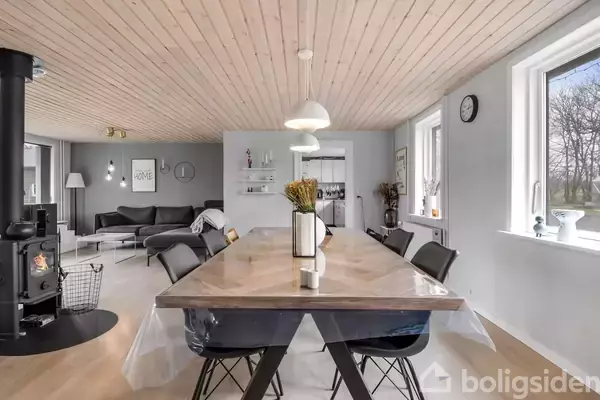 Landlig idyl med moderne komfort og fantastisk garageVelkommen til Kalkværksvej 14, en charmerende ejendom beliggende midt i skøn natur og fredfyldt landlig idyl. Denne bolig i ét plan kombinerer moderne komfort med en afslappende landlig atmosfære og er løbende blevet renoveret for at bevare sin flotte og velholdte stand.Ved ankomst bydes du velkommen af en rummelig og lys entré, der straks giver fornemmelsen af hjemlighed. Entréen et i et med bryggerset og er udstyret med moderne akustikpanele