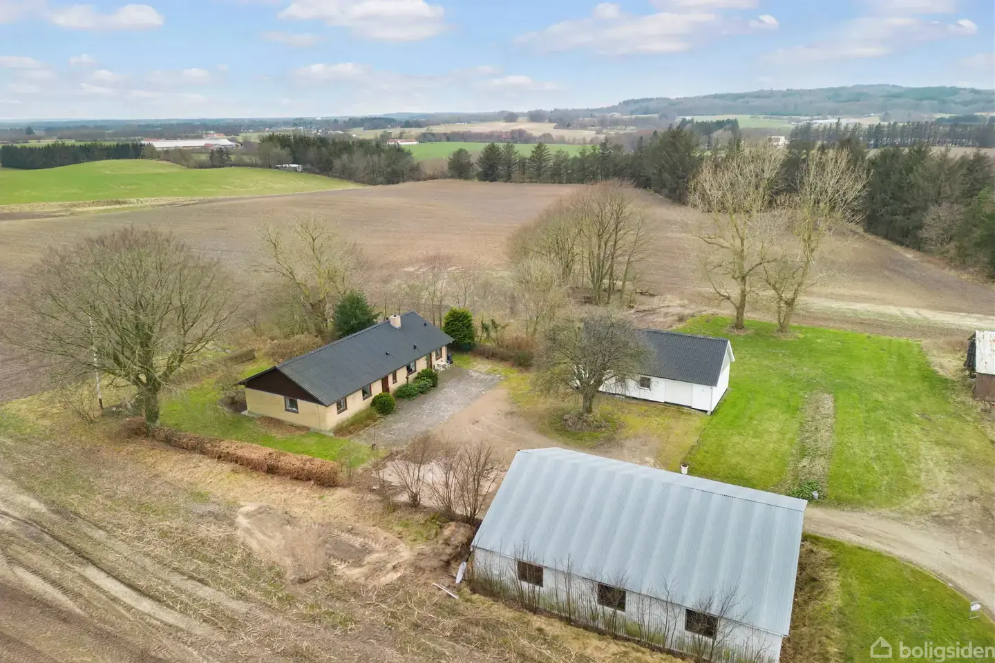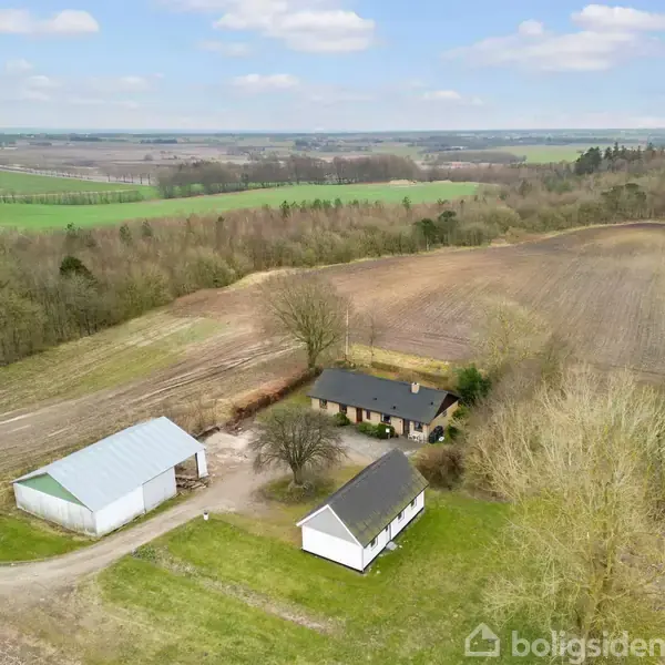 Er du på udkig efter en landejendom med en smule jord? Så bør du se denne ejendom på Kalmargårdsvej 3. Den omfatter en stor grund på 1.3 hektar, der giver mulighed for dyrehold, og den ligger samtidig afsides fra vejen og omgivet af natur og marker. Ejendommen byder på en rummelig bolig på 157m2 i et plan. Du træder ind i boligen gennem en praktisk entre med adgang til gæstetoilet. Herfra fører en fordelingsgang dig videre til et stort bryggers, 3 velindrettede værelser, et stort soveværelse med skabsplads, et badeværelse med badekar, et fint spisekøkken og en stor vinkelstue med masser af naturligt lys. Desuden inkluderer ejendommen en hyggelig gårdsplads med vendeplads, samt udhuse såsom en muret garage fra 2011 på 78m2 med el port. Her er der rigeligt med plads til at bruge det ene rum i garagen til værksted og det andet rum kan også benyttes til f.eks. multirum, motionsrum, værksted eller andet kreativ aktivitet. En stor lade bygning med plads til opbevaring, udlejning til campingvogne eller indretning af hestebokse - mulighederne er mange. Udenfor kan du nyde to flisebelagte terrasser med en skøn udsigt over naturen samt en hyggelig have, der er perfekt til børnenes leg og boldspil.