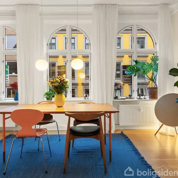 Velkommen til en sjældent udbudt 118 m² herskabelig ejerlejlighed, hvor klassisk københavnerarkitektur møder moderne materialer og nøje udført snedkerhåndværk. Her får du en bolig med en harmonisk planløsning bestående af tre soveværelser og to smukke opholdsrum, velegnet til både familieliv, hjemmearbejde og selskabelige aftener.Lejligheden fremstår veludført og elegant med højt til loftet, smukke dannebrogsvinduer og et imponerende lysindfald. I det store spisekøkken er vinduerne rundede – et
