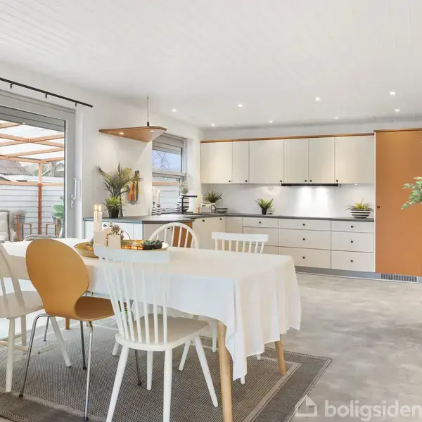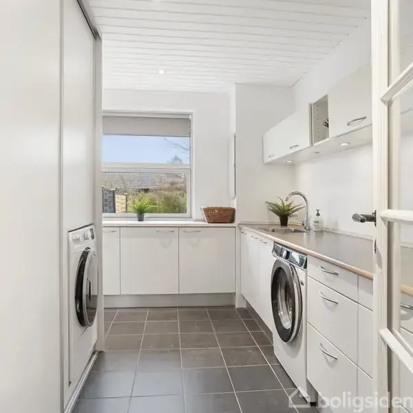 På en lukket, fredelig vej i den attraktive sydlige del af Sæby finder du denne nydelige og stilrene villa med hvidpudset facade og stor, hyggelig have, der inviterer til både leg, afslapning og samvær. Boligen rummer 163 velindrettede kvadratmeter fordelt på to plan og fremstår lys, indbydende og gennemtænkt.Allerede i stueplan opleves en klar tråd i materialevalg og indretning. Det lækre bryggers byder velkommen med masser af skabe, god bordplads og et enkelt, stilrent udtryk med hvide fronter