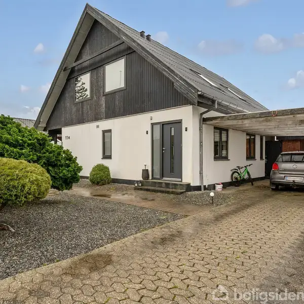 Åbent hus med tilmeldingskrav 10/2 - klik på billede - På en lukket villavej kun ti minutters gang fra Vardes hyggelige bymidte finder du denne rummelige og delvist renoverede toetagers villa. Boligen byder blandt andet på tre værelser og to lyse opholdsafdelinger, mens udelivet kan leves i en privat have med solrige terrasser og udsigtsaltan mod syd. Huset ligger i en tryg, lille lomme med kort afstand til alt, hvad du har brug for i dagligdagen. Der er cirka én kilometer til Frelloskolen og et bredt udvalg af fritidsfaciliteter i Sportium, ligesom du hurtigt kan gå ned i byen og benytte dig af dens butikker, spisesteder og kulturtilbud. I nærheden kan du også se frem til flere indkøbsmuligheder og offentlig transport. Ejendommen står opført i 1961 og er siden ombygget og istandsat i en grad, så det i dag fremtræder både tidssvarende og indbydende. Alt er lysnet og udformet med tidløse materialer med undtagelse af det ene badeværelse, der er funktionelt, men endnu har undsluppet den omfattende renovering - her er der dog god mulighed for udvidelse, så du kan lave et mere rummeligt badeværelse. Det store omdrejningspunkt for familiehyggen i stueplan er et åbent køkken-alrum med direkte udgang til en sydvendt terrasse. Dertil kommer de to værelser, et flot istandsat badeværelse, et mindre bryggers, et depot, et teknikrum og et viktualierum ved siden af entréen. På 1. sal findes en stor stue med centralt placeret brændeovn, loft til kip, fritlagte hanebåndsspær og skydedørsudgang til den indbyggede altan med udsigt over kvarteret. Overetagen rummer også et soveværelse, det øvrige badeværelse og et depotrum, der kan fungere som walk-in. Udearealet er gjort let at holde, og bagtil er haven ugeneret og indrettet med terrasser og plads til leg på græsplænen. Foran er der carport og 30 m2 garage i forlængelse heraf. Skal det være centralt, nemt og bekvemt i Varde, skal det være Karinevej 11 - velkommen til!