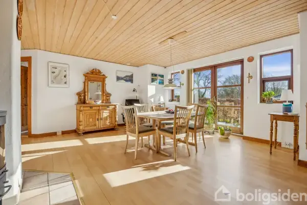 Stor fuldmuret villa med gulvvarme, solceller og genvex Denne moderne villa ligger for enden af en fredelig, blind villavej og har en fantastisk udsigt fra første sal. Villaen, der er fuldmuret og opført i 2001, er bygget med kvalitetsmaterialer og en solid håndværksmæssig finish. Huset er udstyret med moderne faciliteter som solceller, genvex-anlæg, gulvvarme i hele stueetagen og er separat kloakeret. Det er opført i rødbrune teglsten, sorte betontagsten og med mahogni-vinduer. Med energimærke