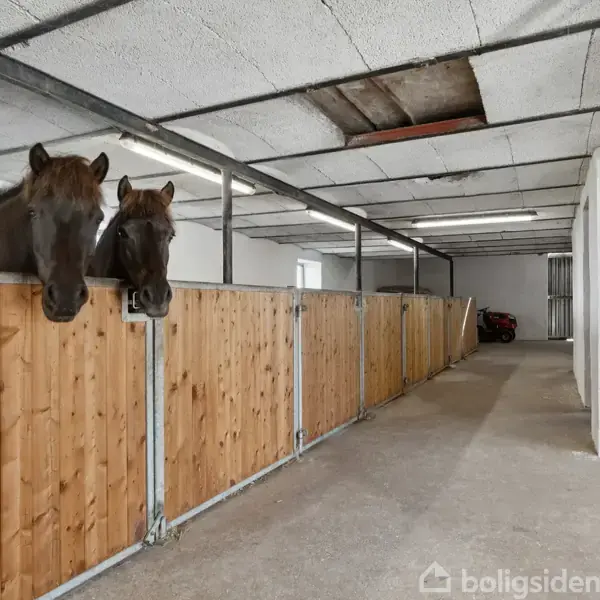 Denne ejendom byder på en sjælden kombination af rummelig bolig, skøn natur og gode faciliteter til dyrehold – alt sammen på en grund på lige knap 15.000 m². Her er der højt til himlen, ro og mulighed for at leve det landlige liv med god plads både inde og ude.Boligen har et samlet areal på 200 m² fordelt på to etager, og planløsningen er gennemtænkt med fokus på komfort og funktionalitet.I stueplan finder man en rummelig entré, der giver adgang til husets hjerte – et åbent og lyst køkken-alrum,