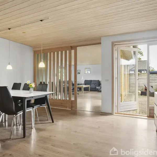 På en rolig, lukket villavej i Vejen finder du denne indflytningsklare etplansvilla, der byder på 149 veldisponerede kvadratmeter. Her får du en bolig med en praktisk indretning, hvor alle kvadratmeter er udnyttet, og hvor hverdagen kan fungere både for den lille og den større familie. Boligens hjerte er det lyse køkken, som ligger i åben forbindelse til alrummet. Her er der god plads til både madlavning og hyggelige måltider. Fra alrummet er der udgang til terrassen, hvilket giver en naturlig