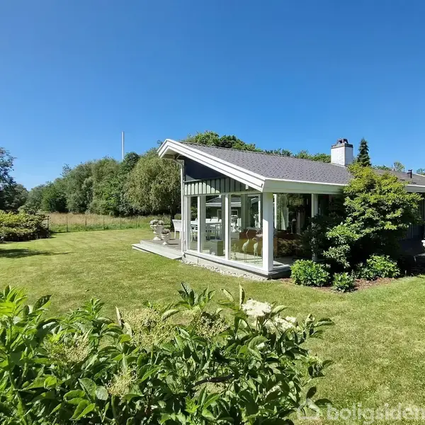 Stor, indbydende fritidsbolig direkte til skønne friarealerFor enden af lille, blind vej ligger denne indbydende og indflytningsklare fritidsbolig. Huset er oprindeligt fra 1968, men om- og tilbygget i 2005, så huset i dag fremstår flot og tidssvarende.  Ejendommen er kendetegnet ved et skønt lysindfald gennem store vinduespartier, der også giver et smukt kig til den omgivende natur. Stor, dejlig stue med åbent køkken og adgang til skøn udestue, er ejendommens naturlige hjerte, der bl.a. suppler
