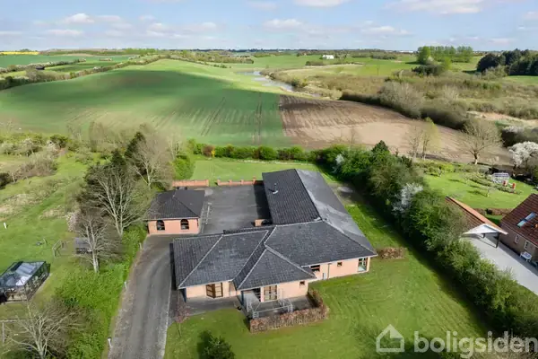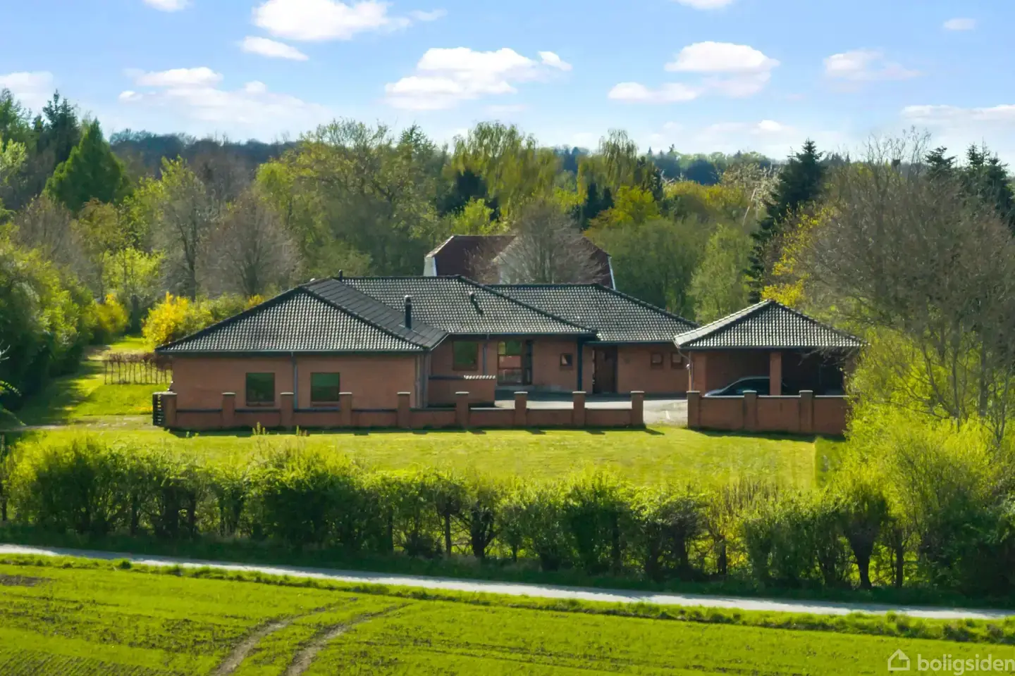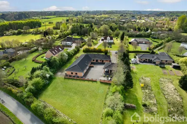 Det er en solid og fuldmuret villa med snedkerlavede vinduer og døre i boligdelen og med masser af plads til erhverv, som vi nu udbyder i naturskønne omgivelser i Grejs, så I kan se frem til at leve, bo og arbejde i et område med en særdeles høj herlighedsværdi. Boligarealet byder velkommen til en gennemtænkt planløsning til en børnefamilie, da her er både en voksenafdeling med privat badeværelse og en børneafdeling med to værelser og badeværelse i den anden ende af huset. Imellem de to værelsesafdelinger er der et skønt og meget lyst opholdsområde med stue, spisestue og køkkenalrum, der er anlagt i let forskudte planer, så rumfølelsen får en ekstra dimension. I køkkenet er der morgensol og den mest vidunderlige udsigt til sø og land, hvor I kan holde øje med råvildt, vilde heste og det øvrige dyreliv, mens I til den modsatte side har dør ud til den vestvendte side af grunden. Der er også et lækkert viktualierum et par trin ned fra køkkenet, så I har et perfekt sted til jeres forråd. I får naturligvis også et praktisk bryggers, der ligger i forlængelse af køkkenet og med videre udgang til et ekstra værelse eller kontor, som er forbundet til erhvervsdelen. I vil således opleve et super godt flow gennem huset og en følelse af en fuldkommen naturlig sammenhæng mellem husets rummelige sektioner. Der er mulighed for at drive erhverv fra ejendommen i to dejligt store og helt reelle rum, der er indbyrdes forbundet af skydedør og med flere udgange til gårdspladsen foran huset, ligesom der fra den ene bygning er udkørsel til den modsatte side. Det er også værd at bemærke, at der både er brændeovn og en luft-til-luft varmepumpe i erhvervsdelen, og at her er lagt køresten, så tungere køretøjer uden problemer kan komme til og fra. Grunden er pragtfuldt stor med sine 3.851 kvadratmeter, hvilket giver jer masser af udfoldelsesmuligheder også udenfor, herunder at holde høns og andre former for mindre husdyrhold. Det meste af grunden er udlagt som græs med enkelte biodiversitetsbede og god afgrænsning, så I kan opholde jer helt ugeneret på grunden. I får adresse i den hyggelige by Grejs, nær Vejle, i en bydel med huse, der er opført i forskellig arkitektur, så der er masser af godt til øjnene. Det samme giver de vidstrakte grønne omgivelser med skov, en sø og marklandskaber, så I får alle muligheder lige ved huset til at gå og cykle de smukkeste ture. Grejs er også en børnevenlig by, der byder på daginstitution og friskole, ligesom her er et supermarked til de daglige indkøb. Køreturen til Vejle klares på cirka et kvarter, så I også bor forholdsvis tæt på bylivet, kulturlivet og uddannelsessteder, hvis I bliver de heldige ejere af denne skønne ejendom.