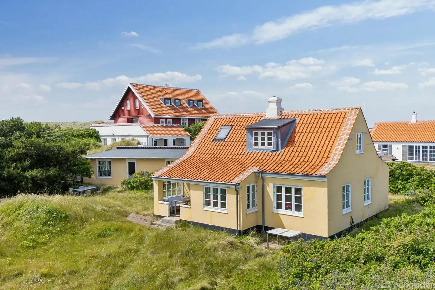 Velkommen til Kikkerbakken 8 – et klassisk og særdeles velbeliggende Skagenshus i Gl. Skagen. En boligperle i særklasse med panoramaudsigt over klitterne, det ikoniske Sømærke. Klassisk arkitektur – tidløs sjæl Ejendommen er et ægte Skagenshus, opført i traditionel stil med gulkalkede mure, hvide gesimser og rødt tegltag – nænsomt bevaret og moderniseret med respekt for husets sjæl. Indenfor bydes du velkommen af lyse stuer, smukke gulve i træ og en harmonisk indretning, hvor kvalitet og atmosfæ