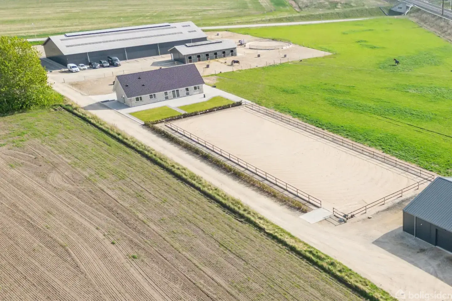 Forestil jer en ejendom, hvor livet nydes i moderne, strømlinede rammer; hvor hestene kan løbe omkring uden for hoveddøren; og hvor byens tilbud samtidig venter bare en smuttur fra adressen. Det er sådan en fantastisk mulighed, der byder sig til her. I kan netop nu overtage hele 28.820 m2 grund, der rummer alt fra store, grønne arealer til ridehal, stald og maskinhus fra 2021. Selvom de nære omgivelser emmer af landlig idyl, er der bare en kort køretur til skoler, institutioner og Waves Shopping