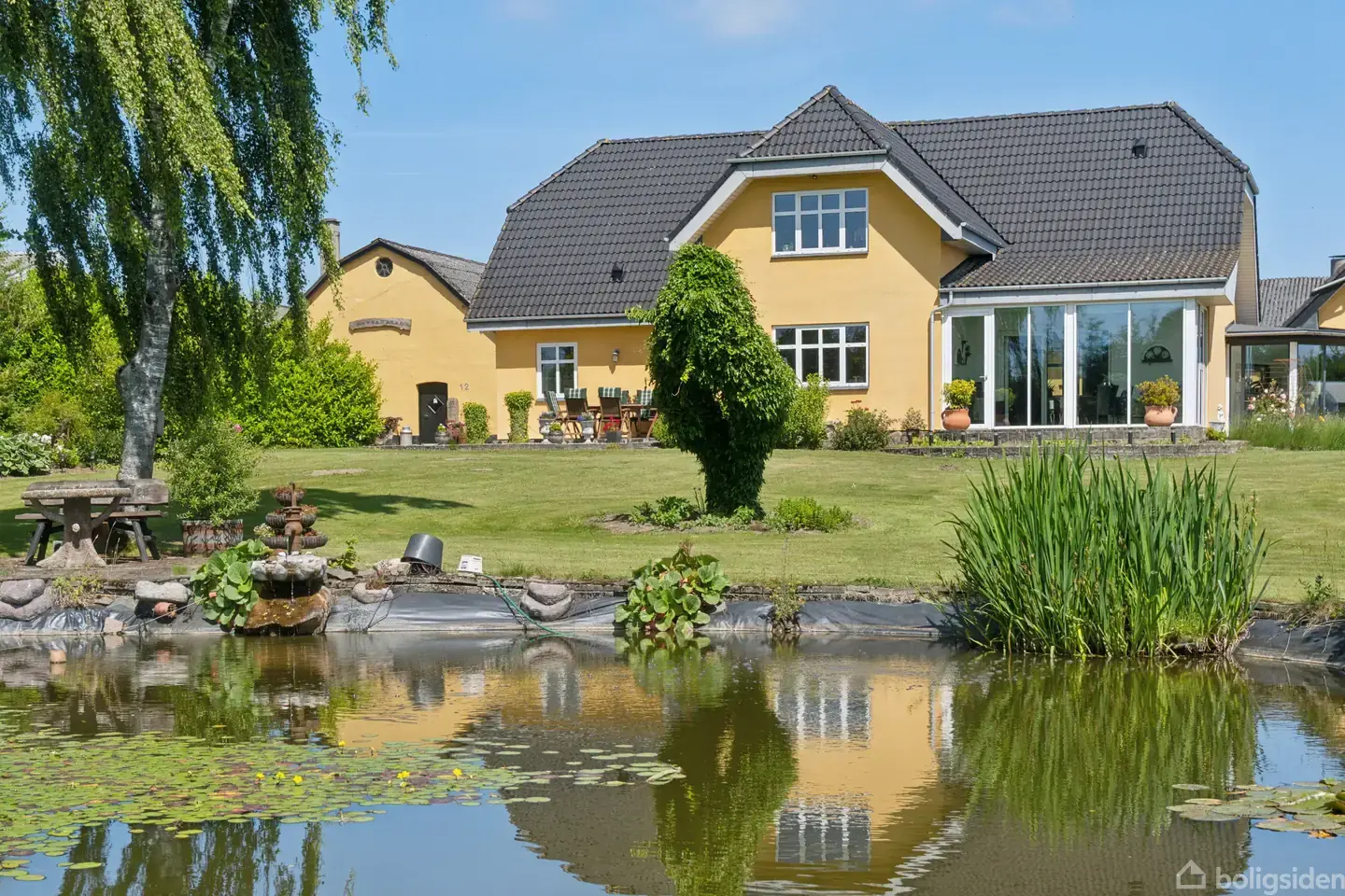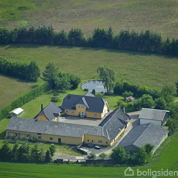 Uforstyrret, landlig idyl og natur karakteriserer omgivelserne, hvor denne store landejendom ligger. Grunden er i sig selv naturskøn med frodige enge, skov og en sø, og dagligt kan man nyde udsigten over det grønne. Bebyggelsen består af et nyere stuehus fra 2016 med et tilknyttet udhus foruden et hav af anseelige udbygninger, der blandt andet inkluderer en dobbeltgarage, en maskinhal og en tolænget staldbygning. I alt medfølger godt 24 hektar jord, som er oplagt til jagt og andre pladskrævende
