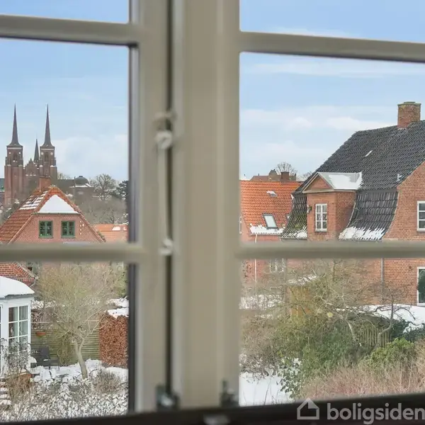 På Kildehusvej, en af byens eftertragtede villaveje, ligger denne smukke murermestervilla i røde sten – omgivet af tilsvarende klassiske ejendomme og en rolig, stemningsfuld atmosfære. Her bor I centralt i Roskilde, med kort afstand til vandet, havnemiljøet og gågaden. Ejendommen rummer 197 etagemeter, heraf 122 m² bolig samt 75 m² renoveret og anvendelig kælder. Ejendommen er i nyere tid nænsomt istandsat med respekt for det herskabelige udtryk. Tag og kviste er fornyet, boligens kvadratmeter er gennemgribende sat i stand med gulvvarme, og kælderetagen er renoveret og efterisoleret, så den fremstår både indbydende og brugbar. I bydes velkomne i en flot entré, der leder videre til det åbne køkken-alrum med spiseplads og direkte udgang til terrassen. Her får I et helt særligt kig til Domkirken i fuld figur – et imponerende bagtæppe i hverdagen, hvad enten I har gang i madlavningen eller samles om spisebordet. I åben forbindelse med alrummet træder I gennem elegante skydedøre ind i dagligstuen. Herfra er der udgang til en vestvendt terrasse, hvor I kan nyde eftermiddag- og aftensolen. Et gæstetoilet fuldender etagen. På førstesalen mødes I af en repos, der fordeler til to gode værelser samt et rummeligt badeværelse. Kælderen tilfører boligen ekstra muligheder. I dag er to af rummene indrettet som teenageafdeling, men her er plads til både hobby, hjemmekontor eller gæsteafsnit. Derudover findes et praktisk vaskerum og endnu et disponibelt rum. Fra kælderen er der direkte udgang til haven, hvilket gør etagen både anvendelig og integreret i boligens samlede indretning. Udendørs venter en nydelig og overskuelig have samt et terrassemiljø. Her kan I samle familie og venner til middage under åben himmel i helt særlige omgivelser. Til ejendommen hører desuden en carport, så bilen holder tørt og praktisk. En sjældent udbudt murermestervilla med historisk charme, moderne rammer og en beliggenhed, der taler for sig selv.