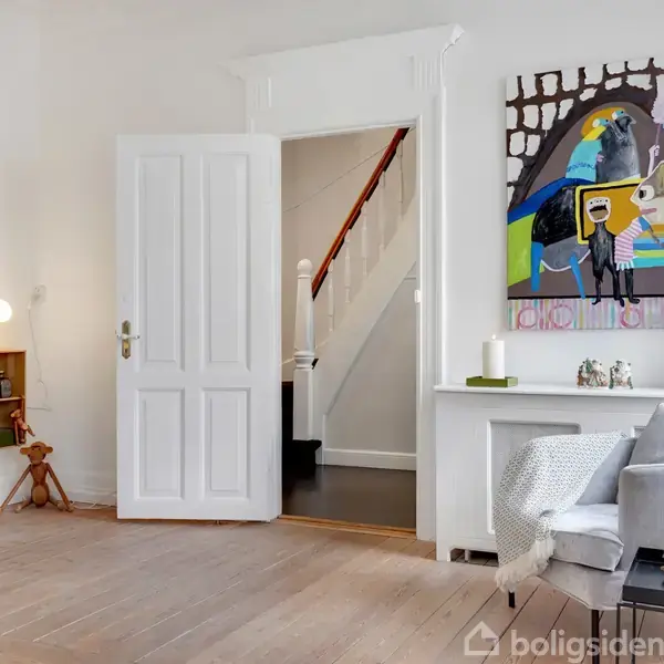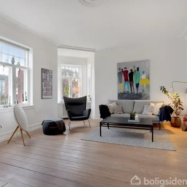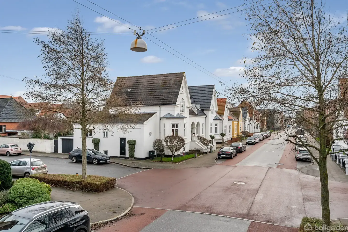 På en af de smukkeste gader I Esbjerg, i hjertet af byen, sælges smuk patricier villa med garage. En helt unik bolig med sjæl, charme og masser af god sti og ikke mindst rigtig god plads. l. Allerede når man kører ned ad gaden, hvor de smukke hvide palævillaer ligger som perler på en snor, fornemmer man, at her er tale om en ganske særlig bolig. De nuværende ejere har løbende renoveret boligen med sans for æstetik og de mange smukke arkitektoniske detaljer. Samtidig er der skabt en funktione