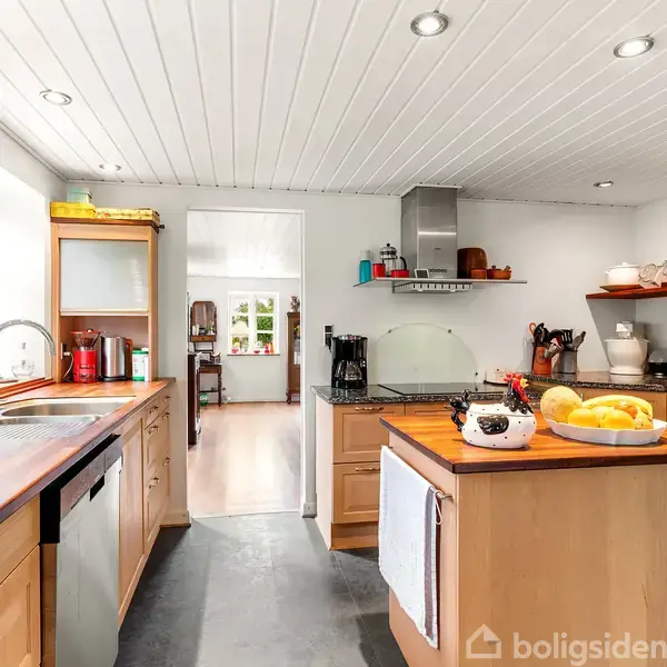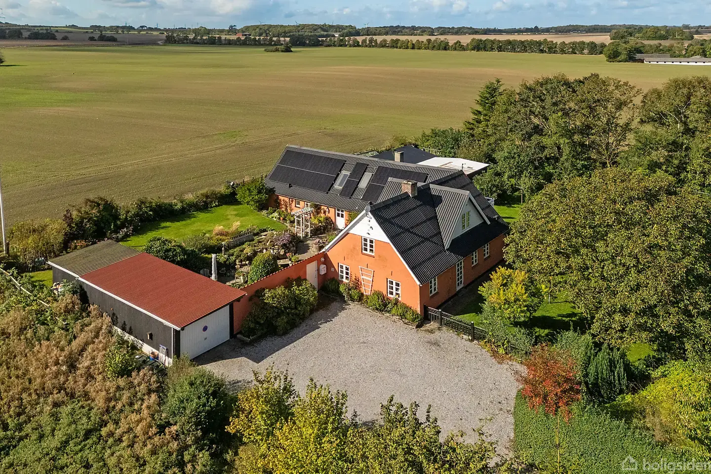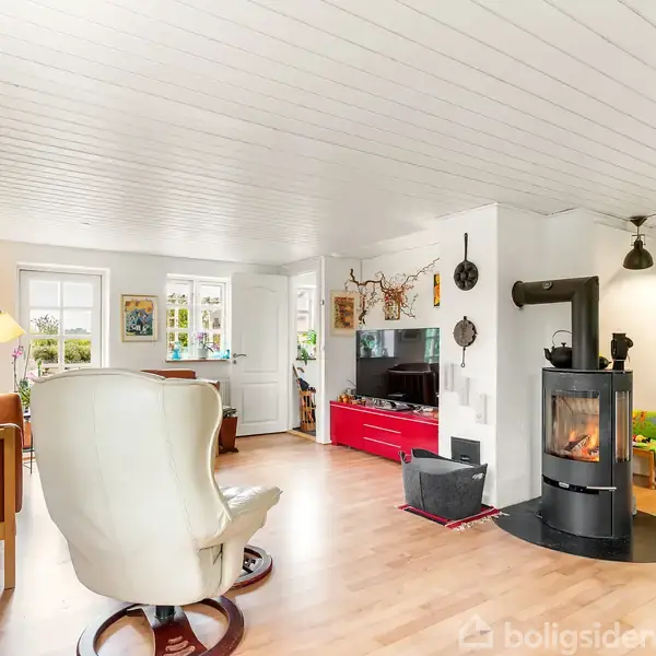 På Kirkeholtvej 51 i Krajbjerg møder du en villa med en sjælden kombination af charme, rummelighed og fleksible muligheder. Beliggenheden er landlig og rolig, men samtidig tæt på Hornslet og med nem adgang til Aarhus. Krajbjerg er en hyggelig by i udvikling, hvor fællesskab og sammenhold præger hverdagen, og det lokale forsamlingshus er en naturlig samlingsplads. Boligen byder på mange spændende rum og løsninger. Allerede i entréen fornemmer du husets atmosfære, og herfra er der adgang til den s