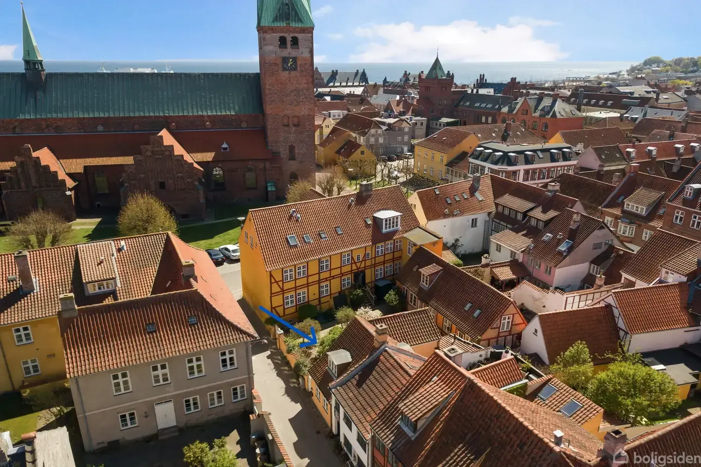 Tilbage i slutningen af 1700-tallet tog Helsingør for alvor form, og i dag er der stadig en stor håndfuld af den oprindelige charme, som skinner med farvestrålende facader, bindingsværk og smalle gader belagt med brosten og det bliver næppe mere hyggeligt end genboen til domkirken, nemlig Kirkestræde 1C. Et fint byhus med lejlighedsstatus, der blev ombygget i år 2000 der passer perfekt ind i gadebilledet. Boligen er en del af en ejerforeningen på i alt 10 lejligheder, men fungerer som et selvstæ