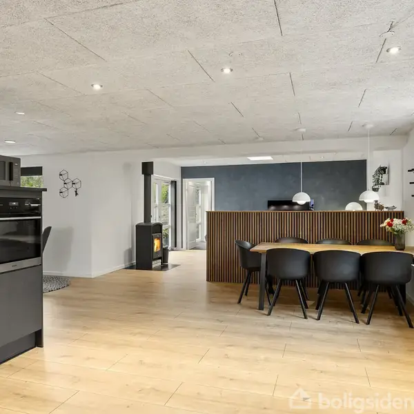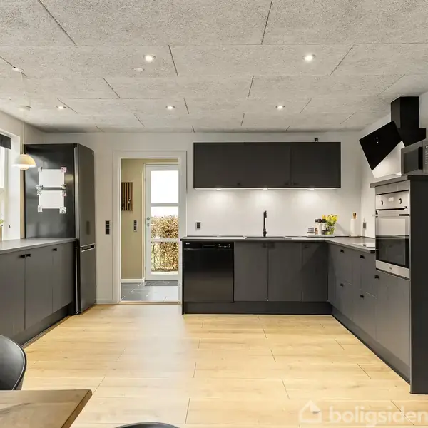 På Kirkesvinget 16 får du en villa, hvor gennemtænkt arkitektur og praktiske løsninger skaber en tryg hverdag for hele familien. Du bor på en rolig villavej, hvor du straks mærker en afslappet stemning fra det øjeblik, du træder ind. Entréen byder velkommen med nøje udvalgte materialer og god plads til både hverdag og gæster, så det altid er nemt at komme hjem.Køkkenet fungerer som husets naturlige samlingspunkt. Her er der plads til fælles madlavning, lektielæsning og hyggelige aftener, og stor