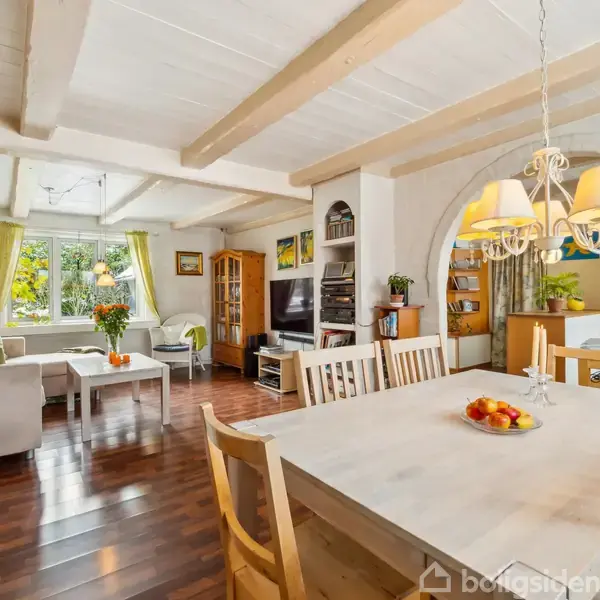 Meget hyggeligt hus beliggende i en dejlig landsby.Huset er med synlige bjælker, så den oprindelige hygge er bevaret, og samtidig er der lavet gulvvarme i hele stueplan, blot undtaget bryggerset.Beliggende ganske tæt på indkøb og offentlig transport. Endvidere er der kun godt 1 km til skolen og Hannæs Børnehus med børnehave og vuggestue. Indrettet med: entré med fransk dør til opholdsstuen, dejligt badeværelse med bruseniche, opholdsstue med et vindue ud til en hyggelig lille have, køkken med st
