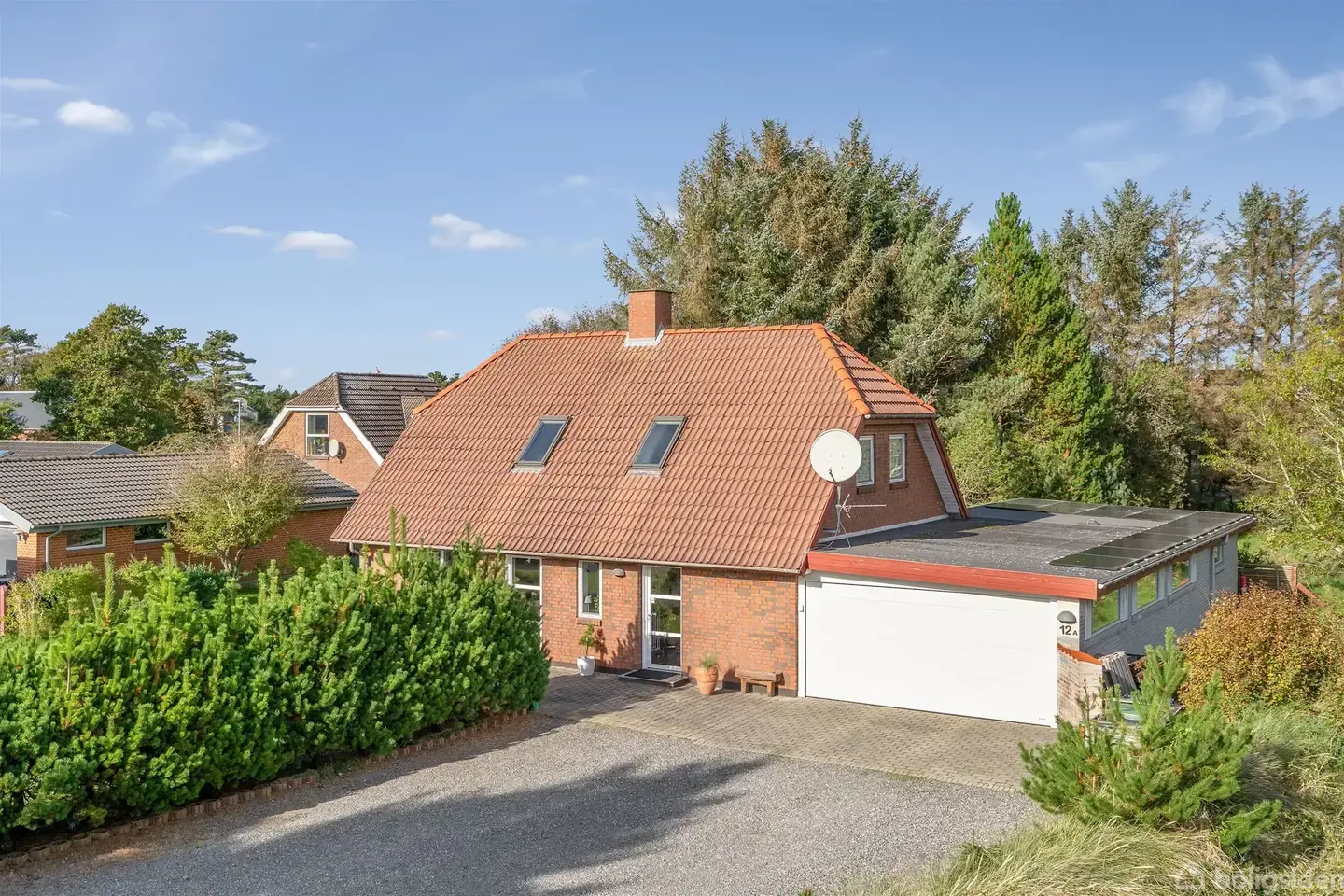 På Kirkevej 12A venter et hjem, hvor straks følger sig godt tilpas. Denne skønne villa ligger midt i Blåvand og byder på både charme, lys og god atmosfære. Med 137 m2 fordelt på to plan og en dejlig grund på 858 m2 får du her et hus, hvor hverdagen kan leves i ro og hyggelige omgivelser. I stueplan finder du et lyst og indbydende køkken/alrum i åben forbindelse med stuen - et naturligt samlingspunkt for familien. Herfra er der udgang til den ene af husets to solrige terrasser, hvor du kan nyde morgenkaffen eller afslappede aftener under åben himmel. Et rummeligt badeværelse og et dejligt soveværelse fuldender etagen. På første sal finder du et stort soveværelse med udgang til altan, hvor udsigten og stilheden sætter stemningen. Herudover to gode værelser og et toilet - perfekt indretning tli børnefamilien eller jer, der ønsker god plads til gæster. Huset er opført i 1986 og fremstår velholdt. Solcelleanlægget gør boligen både miljøvenlig og økonomisk at bo i. Udenfor er haven nem at holde, og de to terrasser giver gode muligheder for både sol, grill og afslapning. Beliggenheden midt i Blåvand giver dig det bedste fra begge verdener - fred og ro, men samtidig gåafstand til byens butikker, caféer og den skønne strand. Her får du et hjem, hvor du kan mærke både hyggen, lyset og den gode energi fra første øjeblik.