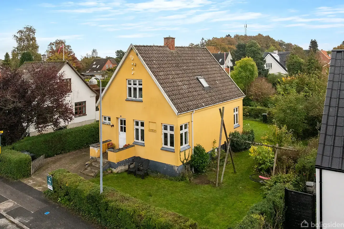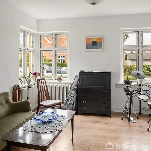 På Kirkevej 8 i hjertet af Sorø møder I en solgul villa, der stråler af varme og byder jer velkommen med følelsen af “her kunne vi bo”. Huset er ikke bare pænt udefra. Det er en bolig, hvor hverdagen får plads til at folde sig ud, og hvor I med tiden nemt kan sætte jeres eget præg, uden at det kræver de store armbevægelser. Stueetagen byder på en rummelig entré, hvor flyverdragter og sko kan stå klar til dagens eventyr. Herfra har I adgang til et gæstetoilet, et køkken i solid stand og to stuer