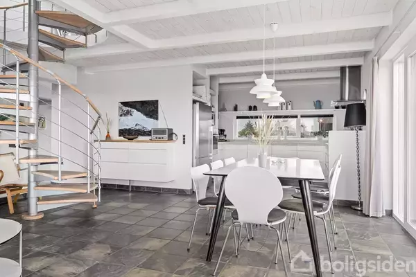 Drømmer I om et elegant fritidshus i smukke rammer? Kirkevejen 40 i Rindby Strand er svaret. Det stilrene hus toner elegant frem på hjørnet af Slunden og Kirkevejen, hvorfra der er en skøn udsigt til Vesterhavets brusende bølger. Her kan I i sandhed få et feriehjem udover det sædvanlige, hvor I kan tilbringe de næste mange ferier og weekender i fantastiske omgivelser. Med nøglerne hertil placerer I jer midt i et hyggeligt kvarter, der både er børnevenligt og roligt. I er tæt på indkøb og lokale