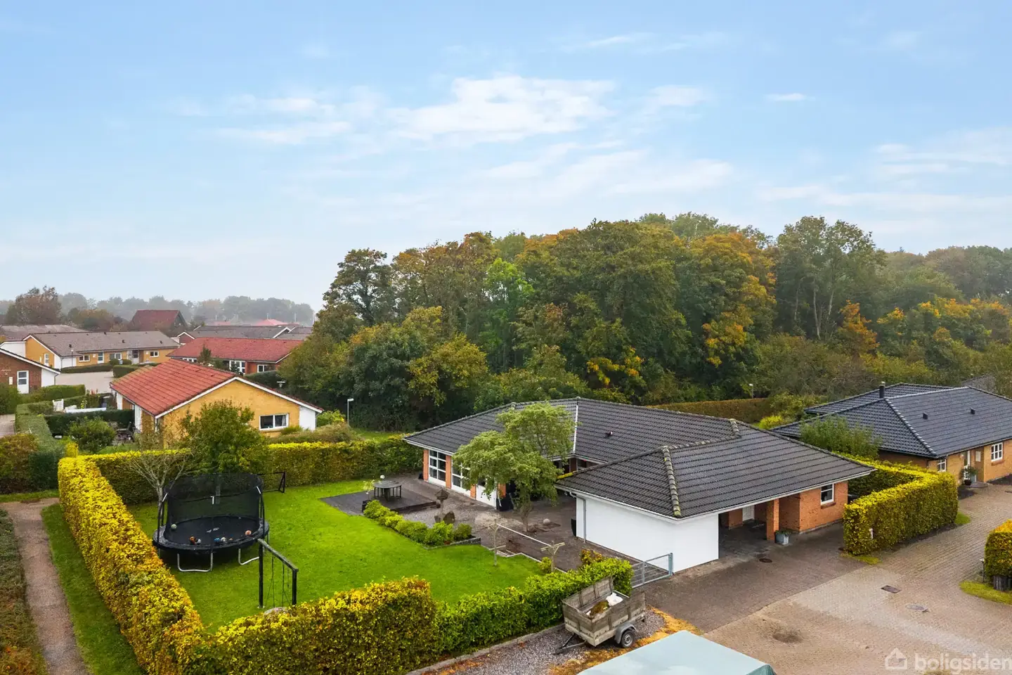 Allerede ved ankomsten mærker du straks den indbydende atmosfære, der præger denne moderne villa fra 2006. Placeringen i et attraktivt, roligt og lukket vænge i Aarup giver dig en bolig, hvor kvalitet og æstetik går hånd i hånd. Den præsentable murstensfacade byder velkommen, og den pæne indkørsel leder til carporten, som har god plads til bilen og ekstra opbevaring. Her er rammerne lagt til et trygt, aktivt familieliv, hvor hverdagens gøremål glider nemmere, og fritiden kan nydes uden forstyrre
