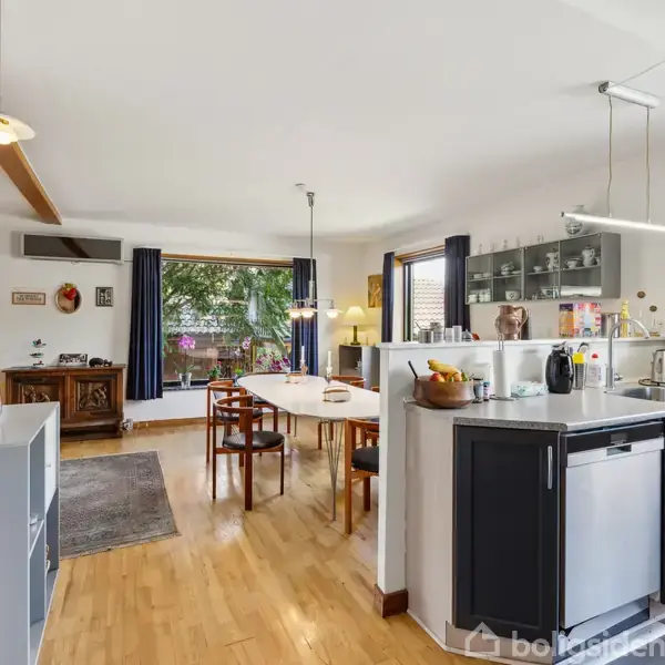 Velkommen til Kirsebærhaven - én af de hyggelige ‘haver’, der tilsammen udgør villakvarteret bag Folehaven. Her bosætter I jer i det fredelige smørhul mellem grønne omgivelser og Valbys travle handelsliv - og I slår jer ned på 114 m2 velegnet til den lille børnefamilie eller parret på udkig efter mere plads.Røde mursten og en masse grønt tager imod jer, når I ankommer til adressen. Her kan bilen parkeres i carporten, hvorfra I hurtigt finder vej op ad trappen og indenfor i det nydelige hjem.Et b