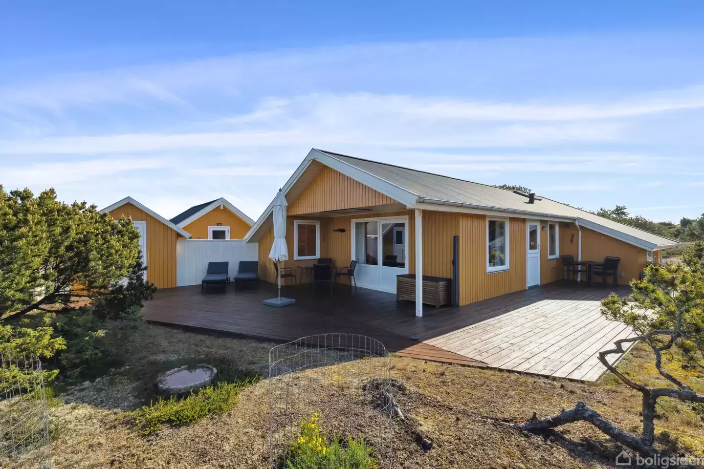 Fritidshuset beliggende på Kistehøjvej 11 er meget funktionelt indrettet. Det er velegnet til en familie på 2 - 5 personer og har gode muligheder for indretning med ekstra køjepladser i det mindre værelse og i annekset. Huset er velisoleret og kan derfor benyttes året rundt. Huset, der har fibernet forbindelse, er løbende vedligeholdt ude som inde. Mod syd er der fuld udsigt til Sønderbjerg. Fra husets østside er der direkte adgang til Ørkenen og dens høje klitter. Fra den høje klit nærmest huse