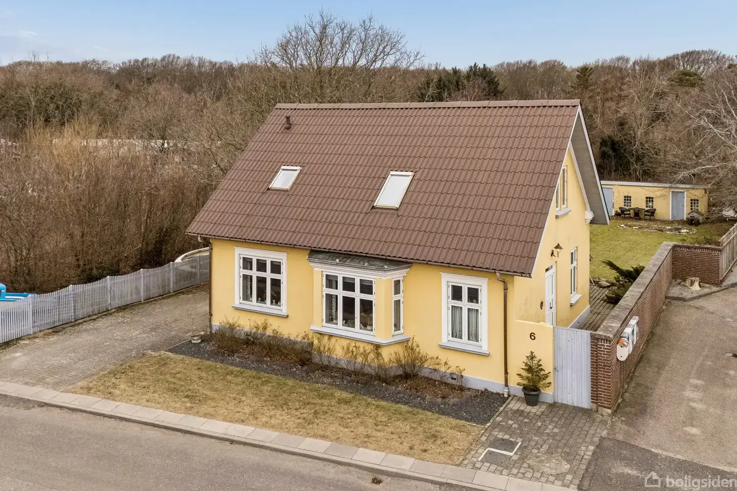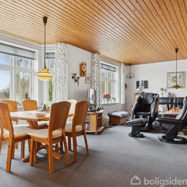 Flot villa nær naturen i RindumTæt på skov, Naturkraft og alle hverdagens gøremål møder I denne flotte villa i Rindum. Villaen præsenterer sig med en klassisk æstetik og en høj standard takket være mange års løbende vedligeholdelse, og inden døre er det tilmed en velkomponeret planløsning i form af blandt andet fire værelser og store opholdsrum I har i vente. Haven er pæn, enkel og let at passe.Udefra fremstår villaen med en gulmalet facade. De hvide vinduer er siden 2004 løbende udskiftet, og i