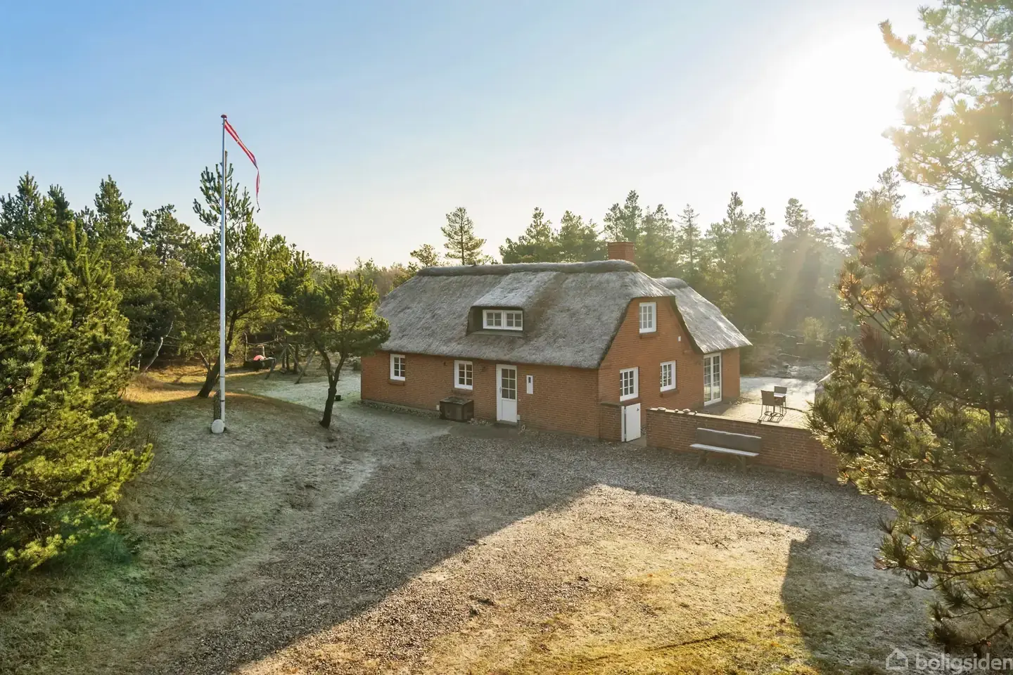 I gåafstand til Vesterhavet og på en ugeneret skovgrund ligger dette skønne familiesommerhus i Vester Husby – et af Vestkystens mest karakteristiske fritidshusområder. Vester Husby er kendt for sine store naturgrunde og særlige byggeregler, der sikrer et roligt og harmonisk udtryk i området. Her bor man midt i naturen med både hav, klitter og Husby Klitplantage inden for kort gåafstand. Samtidig er der kun ca. 12 minutters kørsel til Søndervig, hvis man ønsker caféer, butikker og et mere livligt feriemiljø. Sommerhuset ligger for enden af en lukket stikvej på en helt fantastisk naturgrund, der tydeligt bærer præg af det omkringliggende klit- og skovlandskab. Beplantningen giver både læ og privatliv, og her bliver roen og naturen en naturlig del af opholdet – uanset årstid. Boligen er opført i teglsten med stråtag, og mønningen er udskiftet i 2022. Der er etableret førstesal, hvor man finder et værelse samt repos/værelse med loft til kip. Til ejendommen hører desuden et udhus. Indretningen er lys og velfungerende. Fra entréen træder man ind i det åbne køkken/alrum, hvorfra der er adgang til det ene af boligens i alt fire værelser. Køkken/alrummet fremstår lyst og indbydende med god plads til ophold og samvær, og det gennemgående trælaminatgulv fra 2020 i både køkken/alrum og stue skaber et roligt og sammenhængende udtryk. Fra stuen er der direkte udgang til en af ejendommens flere terrasser, som giver mulighed for ophold både i sol og læ. Fra køkken/alrummet er der adgang til gæstetoilet med vaskemaskine og tørretumbler samt et badeværelse med både spa og sauna – begge med gulvvarme. I stueplan findes yderligere et værelse, inden trappen fører op til førstesalen. På førstesalen ligger de resterende værelser, som fremstår lyse og rummelige med loft til kip og giver plads til flere overnattende gæster. Et velbeliggende og indbydende sommerhus i et af Vestjyllands mest eftertragtede naturområder – tæt på havet, skoven og med gode rammer for både familieophold og afslapning året rundt. Sommerhuset har ikke tidligere været tilmeldt udlejning. Hvis sommerhuset ønskes udlejet eller du blot er nysgerrig på hvad huset kan indbringe i udlejning, så har EDC Ulfborg et udlejningsbudget, som er udarbejdet af det lokale feriehusudlejningsbureau Feriepartner Vedersø Klit og Thorsminde Vi opfordrer altid til, at udlejningsbudgettet følges op med en uforpligtende snak med Feriepartner, så dine ønsker for udlejning kan tilpasses i budgettet.