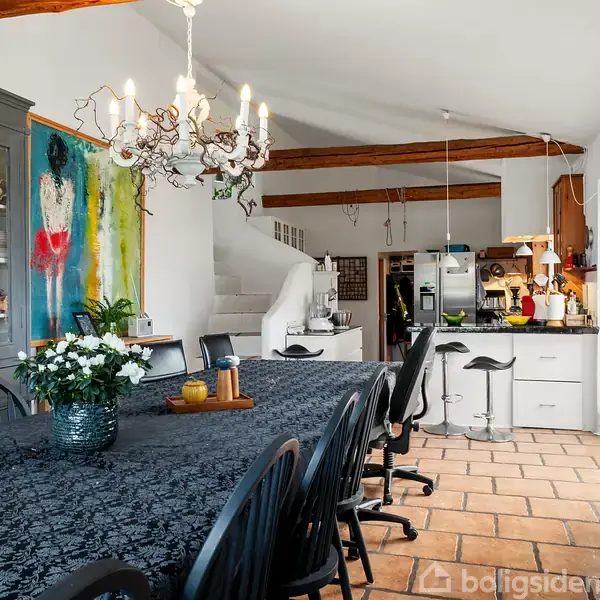 På denne ejendom får du hele fem værelser, der er velegnet til større familier eller dig, der ønsker flere zoner til arbejde og fritid. Grunden udgør hele 5.572 m²—plads til både køkkenhave, boldspil og andre aktiviteter, så du får god afstand til naboer og åbent udsyn over markerne.Boligen er løbende tilbygget—senest omkring 2009—og fremstår som en harmonisk kombination af klassiske detaljer og tidssvarende løsninger.  Køkken/alrum danner et naturligt samlingspunkt, hvor loft til kip og synlige