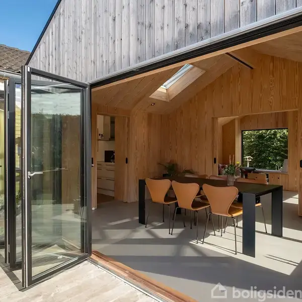 Klavs Nebs Vej. Ja, med både v i Klavs og b i Nebs er det ikke det nemmeste vejnavn at få chaufføren til at skrive på GPS’en i taxaen, når man skal hjem efter en tur i byen. Det er et lidt pudsigt vejnavn, kontoret for vejnavne på kommunen har besunget kvarteret med. Men altså, skoven og Danmarks dybeste badesø med 3 friluftsbade ligger lige om hjørnet. De sydlige bade er Frederiksdal Fribad og Kinabugten, og Furesøbad ligger i den nordvestlige ende. Rekreativ er den med kajakker, kanoer og sejlbåde i vandet. Badebroen i Frederiksdal Fribad med pop up restaurant om sommeren er en gåtur på 4-5 minutter fra huset på Klavs Nebs Vej 9. Vandet i søen er så friskt og rent, at her må fiskes med fisketegn. Gedder, skaller, aborrer, sandarter og braser bider på, hvis der ellers er noget lækkert på krogen. Et ét-plans-hus uden spildplads Huset er bygget i 2012 på en 812 m2 stor grund med insekter og fugleliv. Der er altså biodiversitet i haven, som man siger, med uden det vildtvoksende kaos. Huset fik en fin tilbygning i 2023 med 2 stuer og en stor foldedør, der får alt på terrassen indenfor og stuen udenfor. Terrassen er syd- og vestvendt, så her er der sol på bare mavser og glade ansigter hele dagen. Med 202 m2 er det et hus med en god planløsning og masser plads til familien med børn. Det er et ét-plans-hus uden trappetrin, ingen spildplads. Ældre får det derfor også godt her med plads til familien og børnebørn på besøg. Danmarks bedste skoler Klavs Nebs Vej ligger i et attraktivt kvarter med stille veje. Børnefamilien kan glæde sig over gåafstand til dagsinstitutioner og 3 skoler, som er vurderet blandt de bedste i Danmark. Indkøb og S-tog er ikke langt væk, og Holte Midtpunkt er bare 3 minutter i bil. Furesøen, Frederiksdal Fribad, Næsseskoven, Geelskov, Kollemosen og Malmmosen hører med til kvarteret. Omgivelserne er generøse med rum til oplevelser, hundeluftning og mountainbiking i skovene. Og tænk, det hele tog fart i 1100-tallet, hvor Virum begyndte sin historie. Kongevejen kører gennem Virum, og det tager kun et kvarter at køre til København.