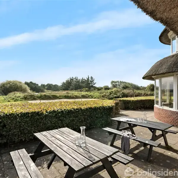 Mellem Nissum Fjord og det imponerende Vesterhav, med de brede, hvide sandstrande, finder I denne unikke klitgård – et ideelt sted til store familiesammenkomster, ferier med mange deltagere eller som en udlejningscase. Klitgården ligger på en stor, naturskøn grund på hele 6.055 m² og nås via en charmerende grusvej, der allerede ved ankomst sætter scenen for ro og idyl. Huset er opført i klassisk stil med teglstensfacade, hvide vinduesrammer og et smukt, håndlagt stråtag. Som en eksklusiv detalje er taget afsluttet med en elegant kobbermønning og en smukt udført runding ved kanarpen, hvilket tilføjer både karakter og håndværksmæssig finesse til ejendommens udtryk. Klitgården rummer op til 32 overnattende gæster fordelt på fire separate lejligheder: · Lejlighed A er på 157 m² og har plads til 10 personer. · Lejlighed B er 120 m² med plads til 8 personer. · Lejlighed C er 67 m² og rummer 6 personer. · Lejlighed D er den største med 180 m² og plads til 8 personer. Hver lejlighed har sit eget fuldt udstyrede køkken, spiseområde og en hyggelig opholdsstue med brændeovn. Desuden har alle lejligheder deres eget spabad til to personer, og tre af dem byder også på sauna. Lejlighed D har desuden et aktivitetsrum med poolbord, bordtennis og bordfodbold – perfekt til hyggelige timer sammen. Særligt skal fremhæves at Klitgården desuden er udstyret med energivenlig jordvarme, suppleret med et solcelleanlæg, som sikrer en stabil og bæredygtig opvarmning af ejendommen – her både miljøvenligt og økonomisk. Udendørsarealerne indbyder til leg og aktivitet for både børn og voksne. Her finder I blandt andet en stor fodboldbane med mål, en beachvolleybane samt en petanquebane. I nærområdet er der yderligere aktiviteter som en skovlegeplads, en minigolfbane, cafe, indkøb og ikke mindst Vesterhavet. For de eventyrlystne byder Nissum Fjord på fremragende muligheder for windsurfing. Hvis I holder af lystfiskeri, ligger den hyggelige fiskerby Thorsminde kun 10 minutters kørsel mod nord. Foretrækker I at tage turen på cykel, er der anlagt cykelsti hele vejen dertil. Tilmeldt udlejning - for udlejningspotentiale bedes henvendelse ske til EDC Ulfborg.