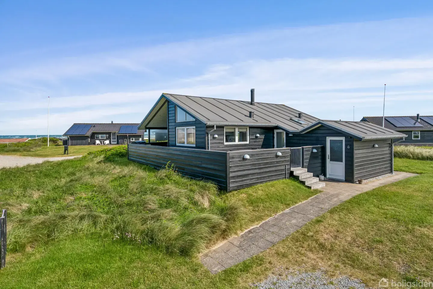 Velkommen til dette skønne hus på Klitvej i Nørlev, nær stranden og med flot udsigt.Huset er sort og opført med vandret royal beklædning og listepap. Vinduer og døre er hvide, og tagrender samt nedløb er udført i zink. Oprindeligt lå der et hus fra 1960 på grunden, men efter en om- og tilbygning i 2004 blev det erstattet af et nyt byggeri, hvilket også fremgår af kommunens arkiver.Indvendigt er væggene lyse med hvide gipsplader, trælofter med sports i flere af husets rum og et stort køkken/alru