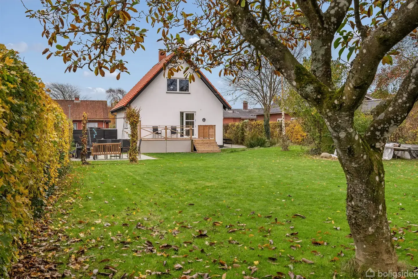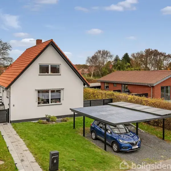 Åbent hus med tilmeldingskrav 3/2 - klik på billede - Flot moderniseret og fuld af personlighed - denne 50'er-villa på Kløverbakken i Varde er klar til at slå dørene op for en ny familie, der gerne vil flytte direkte ind, men som også sætter pris på den charme, der følger med et ældre hus. Er det jer, der er de heldige, der får lov at indrette sig på de 176 etagemeter, så kan I starte i stueplan, hvor opholdsrummene ligger i åben forbindelse og giver god plads til spisebord, en stor sofagruppe og evt. hyggekroge med bogreoler, klaver og lignende. I opholdsrummene sørger Troldtekt-plader i loftet for en god akustik, og lyset strømmer ind fra tre sider. Køkkenet er i et nydeligt, tidløst design med hvide fronter og bordplade med et blåt mosaik-stænkpanel som en fin kontrast. Overtøjet kan I få plads til i gangen - og resten af garderoben kan I opbevare på første sal, hvor det ene værelse har en indbygget skabsvæg, og det andet har en størrelse, der sagtens kan rumme et garderobeskab af en anseelig størrelse. Faktisk er dette værelse stort nok til, at det kan deles i to, hvis behovet opstår. Førstesalen er lys og indbydende, og begge værelser har udsigt over kvarteret. Opbevaring er der også god plads til i kælderen, som byder på værksted, bryggers, viktualierum, toilet og et disponibelt rum. Bag boligen er der en dejlig, ugeneret have med en hævet træterrasse med adgang fra stueplan. Haven består primært af græs, bøgehæk og enkelte træer, så havearbejdet er til at overkomme. Her er også en fliseterrasse med masser af sol og et lille udhus/anneks, som I kan bruge til haveredskaber og cykler eller sætte i stand og bruge til hobbyer, kæmpe legehus eller lignende. Med til ejendommen hører også en dobbelt carport og en nem forhave. Fra den fredelige adresse er der kort vej til Frelloskolen, Campus og Børnehaven Østervang. Der er desuden få hundrede meter til det grønne område ved Varde Å, ligesom indkøb, Frisvad Station og Lunden ligger tæt på. Vil I opleve det hele selv, så kontakt EDC Varde for en fremvisning.