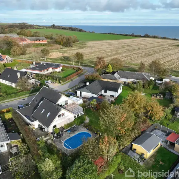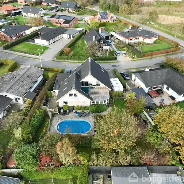 Åbent hus med tilmeldingskrav 1/2 - klik på billede - I Haldbjerg udbydes nu denne skønne, løbende renoverede villa med et flot energimærke A2010 – en sjælden kvalitet, der sikrer både lave driftsudgifter og høj komfort. Villaen, som er opført i 1969, fremstår i dag som et indbydende og moderne hjem på hele 209 m² fordelt på to plan, og med både udsigt til Kattegat, lækre udemiljøer og egen swimmingpool er den ideel som både fritids- og helårsbolig. Stueplan byder på et lyst og stilrent køkken renoveret for tre år siden, hvor der er god arbejdsplads, masser af skabsplads og mulighed for spisebord. Herfra er der direkte adgang til den store og lyse spisestue, som med sin rummelighed og flotte atmosfære er perfekt til både hverdag og gæster. Fra køkkenet er der også udgang til en sydvestvendt terrasse, hvor solen kan nydes det meste af dagen. Et moderniseret badeværelse samt et praktisk bryggers med adgang fra garagen fuldender etagen. Den overdækkede terrasse fungerer som en hyggelig oase med udekøkken og god plads til grill og loungemiljø – et skønt sted at opholde sig, også når vejret driller. Herfra er der adgang til den private have og den indbydende swimmingpool, som gør sommeren ekstra dejlig. På førstesalen åbner en stor og meget lys stue sig op med smukt lysindfald fra de store Velux-vinduer og vinduet mod altanen. Fra altanen kan I nyde udsigten til Kattegat og den fredfyldte stemning, der kendetegner området. Etagen rummer desuden et lækkert badeværelse med spa og to gode værelser, og samlet set byder huset på fire værelser med mulighed for at etablere flere. Villaen er opgraderet med luft-til-vand varmepumpe fra 2021, hvilket sikrer et meget fornuftigt varmeforbrug. Garagen på 43 m² med integreret udhus på 11 m² giver desuden gode muligheder for opbevaring og hobby. Haldbjerg er et område med et stærkt lokalt fællesskab og en aktiv grundejerforening, som arrangerer hyggelige aktiviteter året rundt. Her er kort afstand til både skøn natur, legeplads med bålhus, motorvejsafkørsel og skolebus, der trygt bringer børnene til og fra skole. Boligen er perfekt til familien, der ønsker plads, komfort og nærhed til både natur og by – alt sammen i en bolig med en helt særlig atmosfære.