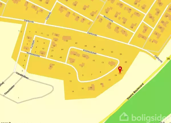 Vinde Bakke: På Vinde Bakke udstykkes 1. etape af et nyt stort boligprojekt i Skive. Vejnavnene er opkaldt efter H.C. Andersens Eventyr. I første etape - hvor denne grund ligger - udstykkes på vejen "Klokkedybet" denne grund som en af ialt 29 grunde. På grunden må der opføres huse i 1 eller 2 plan jf. lokalplan nr. 225. Adgang til området sker via Dølbyvej. Hele området er på ca. 200.000 kvm. og indeholder fællesarealer og store grønne områder. Det hele indkredses af en 3 meter bred natur- og op